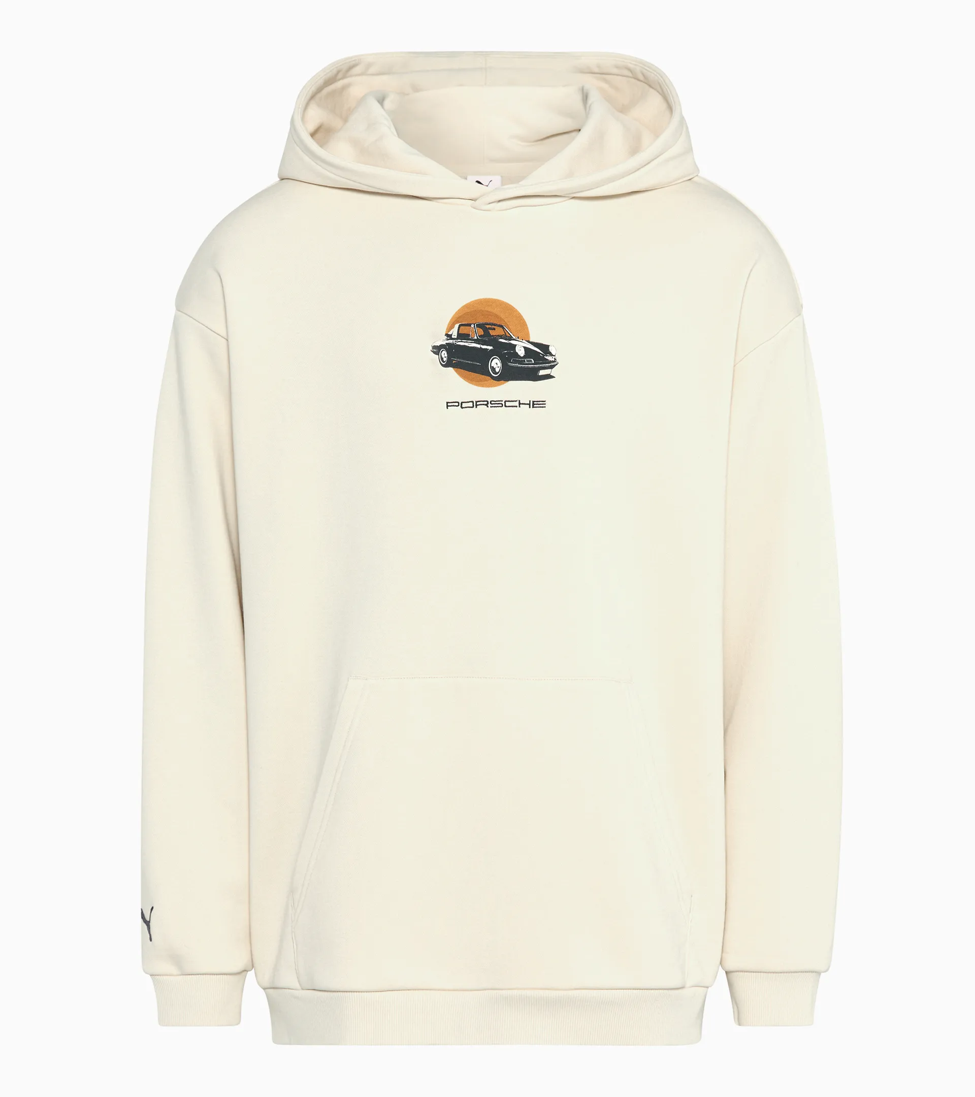 Sweat à capuche exclusif avec imprimé Targa, monogramme original du véhicule et logo Porsche.