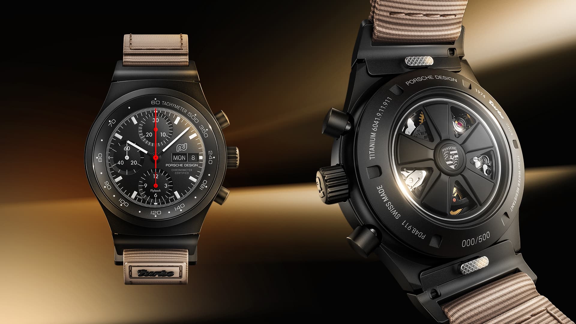 Een beige textielband met “Turbo”-badge en een extra titanium band met zwarte titaniumcarbide-coating maken het pakket compleet.