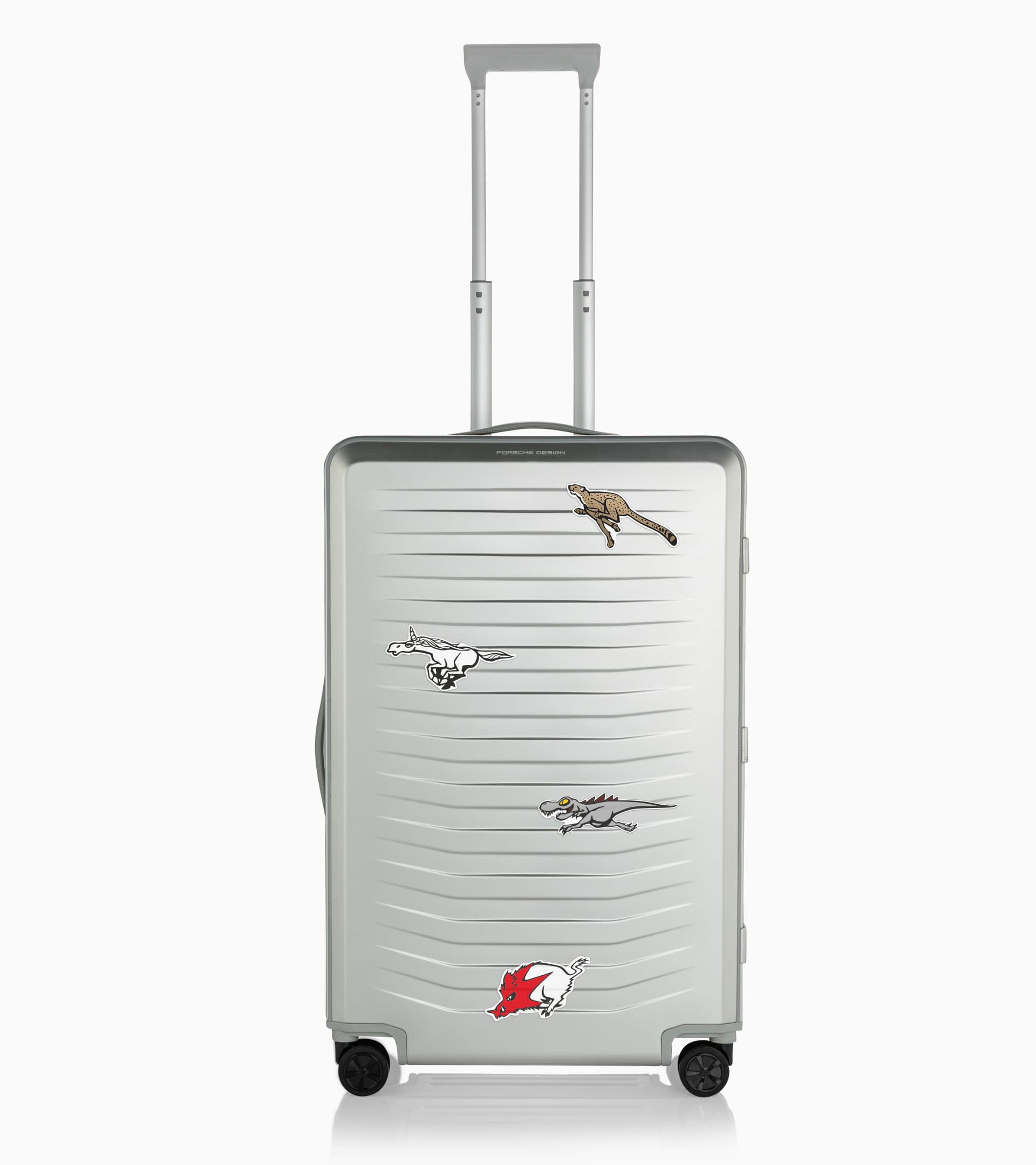 Het ontwerp op de voor- en achterkant van de trolley is geïnspireerd op de aerodynamische vorm van de 911, die bij elk reisavontuur een kenmerkend patina krijgt.