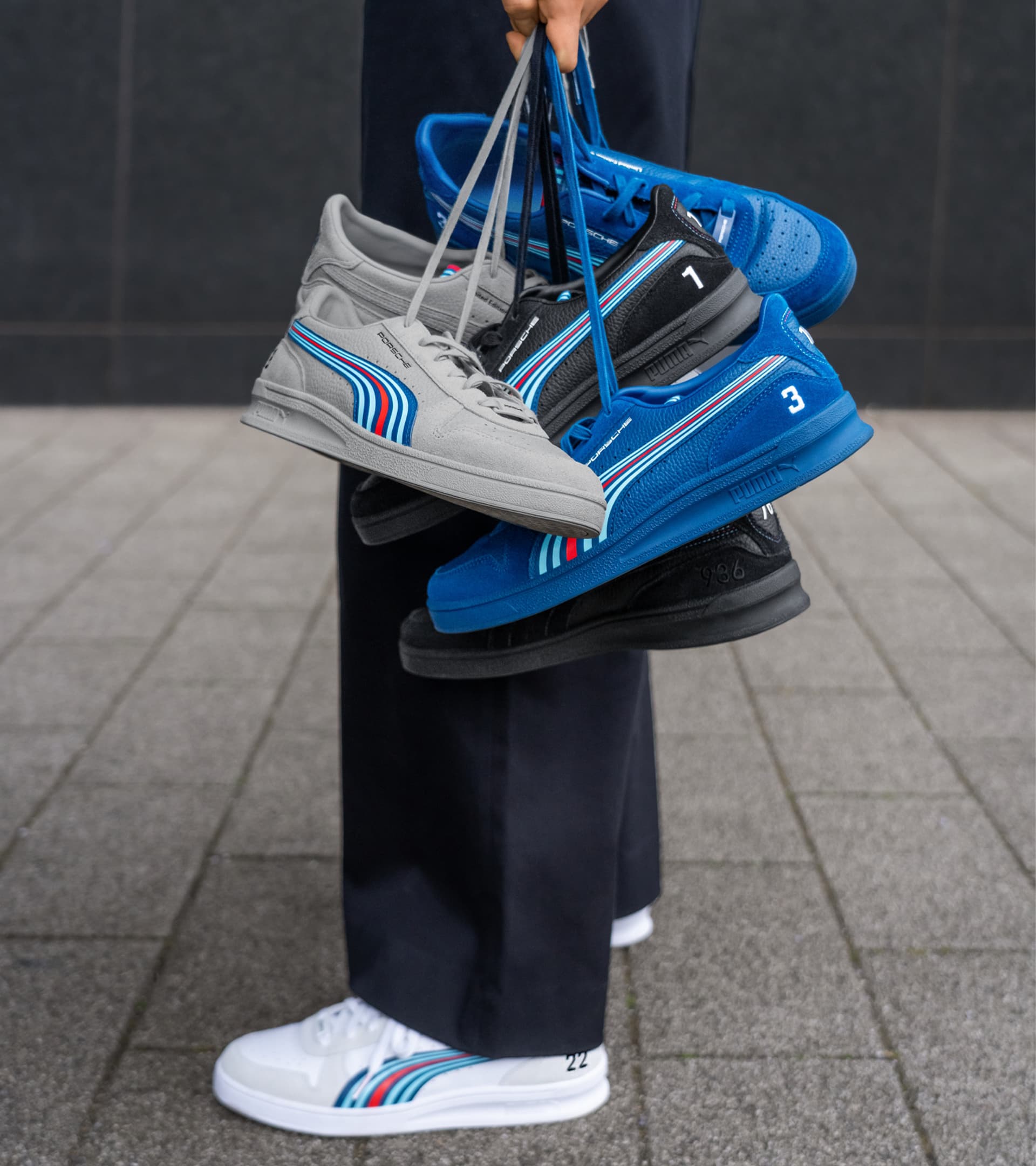 De inlegzool met het Porsche- en MARTINI RACING®-logo zorgt voor een hoog draagcomfort. De schoenbedels en veterversieringen voegen extra accenten toe. Een tweede paar veters maakt flexibele styling mogelijk. Een ander highlight is de levering in een speciale doos met een praktische sporttas – beide in de onmiskenbare MARTINI RACING®-look.