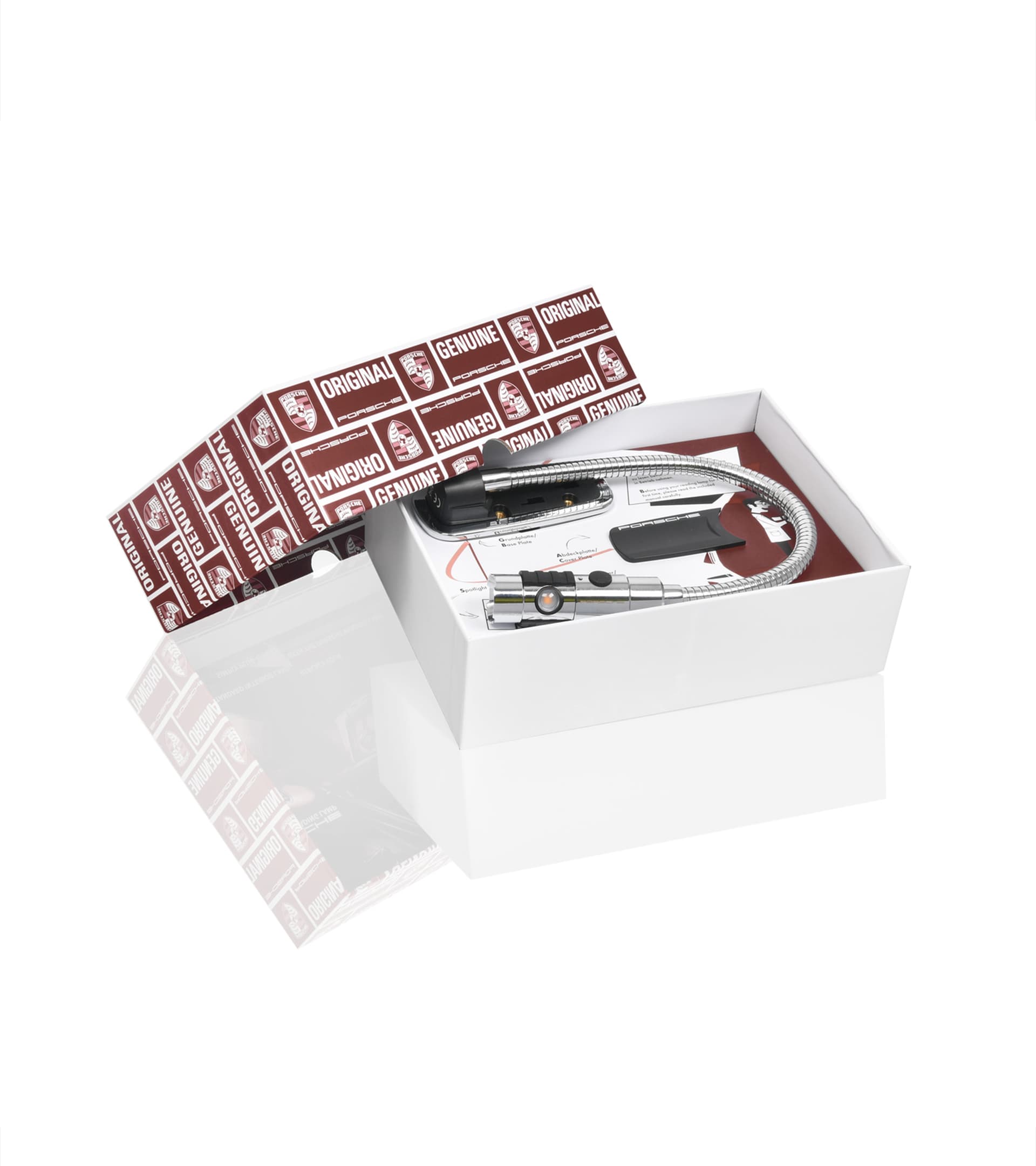 Ønsket om mer lys inne i bilen går nå i oppfyllelse i mange klassiske Porsche-modeller. Med den klassiske designen fra den tidligere Porsche-æraen kombinert med moderne LED-teknologi, passer den fleksible leselampen i svart perfekt inn i interiøret. I tillegg til den høye kvaliteten på materialene, er den gjennomtenkte konstruksjonen et høydepunkt i seg selv. Fra du åpner den populære emballasjen i originaldel-design til lampen er ferdig montert, er det bare noen få enkle trinn. Ingen boring. Ingen ledninger. Standard innvendig lampe over B-stolpen erstattes ganske enkelt med den nye LED-leselampen, som kan fjernes når som helst uten å etterlate spor. Selvsagt beholdes også den automatiske av- og påkoblingen av lyset når døren åpnes og lukkes.