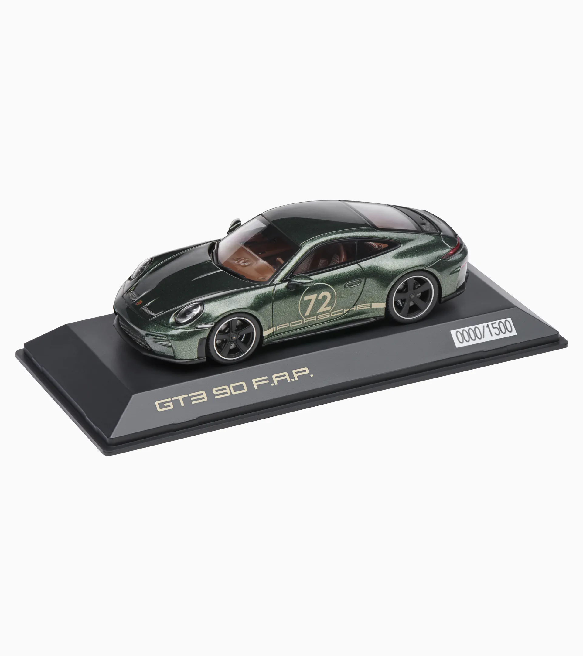 Hoogwaardig, gedetailleerd verzamelmodel van de Porsche 911 GT3 90 F. A. Porsche (992.2) gemaakt van hars. Gelimiteerd tot 1.500 stuks.