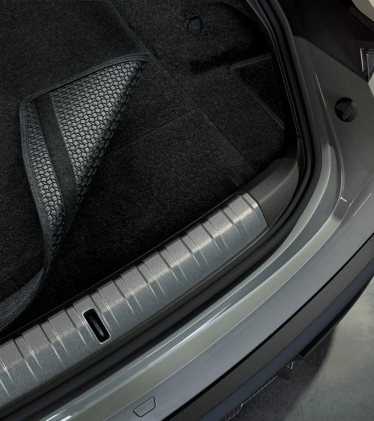 Dwustronna mata do bagażnika z obszyciem wykonanym z wysokiej jakości skóry nubukowej. Wodoodporny i nadający się do mycia spód dwustronnej maty do bagażnika o wzorze w romby. Ogranicza on możliwe przesuwanie się ładunku w przypadku ułożenia maty spodem do góry. Ponadto dwustronna mata do bagażnika zapewnia osłonę progu bagażnika, chroniąc pojazd przed uszkodzeniem podczas załadunku i rozładunku.