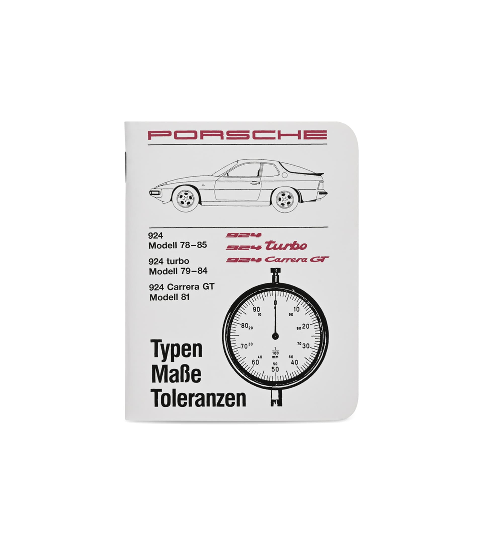 Książka w miękkiej oprawie „Typy, wymiary, tolerancje” dla Porsche 924, 924 Turbo, Carrera.