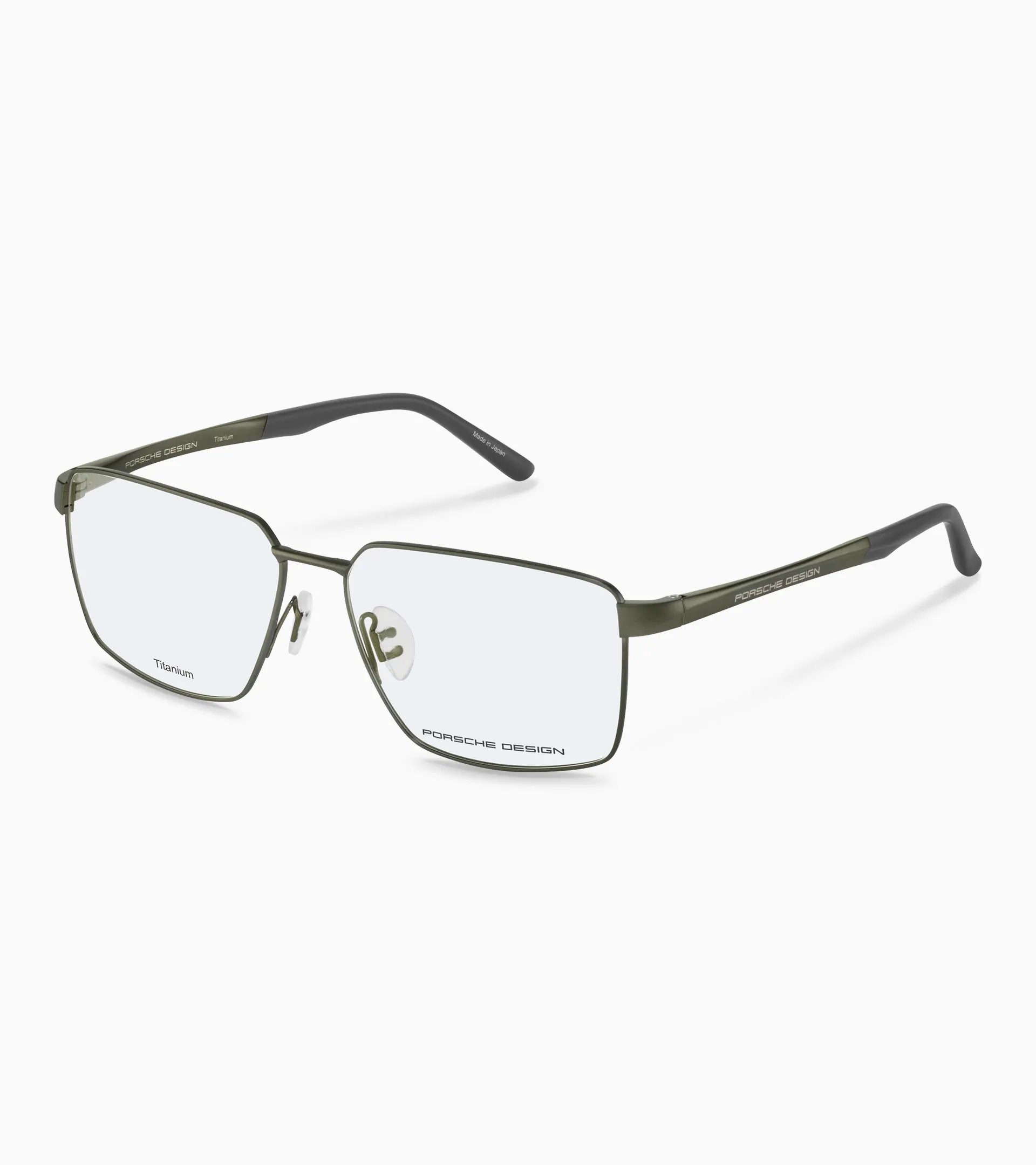 Ultralekkie okulary Porsche Design, wykonane z tytanu, o organicznej stylistyce i z kultowymi trójwymiarowymi zausznikami.