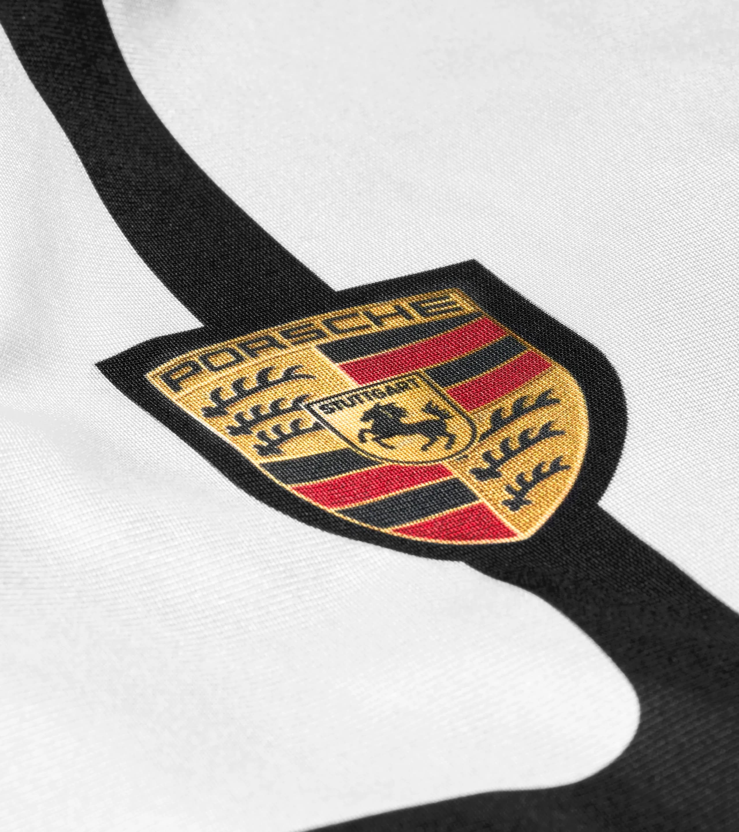 Dopasowany pokrowiec na samochód do użytku w pomieszczeniach, wykonany z oddychającego, antystatycznego i odpornego na zabrudzenia materiału. Szyty ręcznie z kontrastową lamówką, ozdobnymi paskami, napisem „PORSCHE” i kolorowym herbem Porsche. Czarna tkanina wykonana jest w 100% z poliestru i można ją prać w temperaturze 30°C.