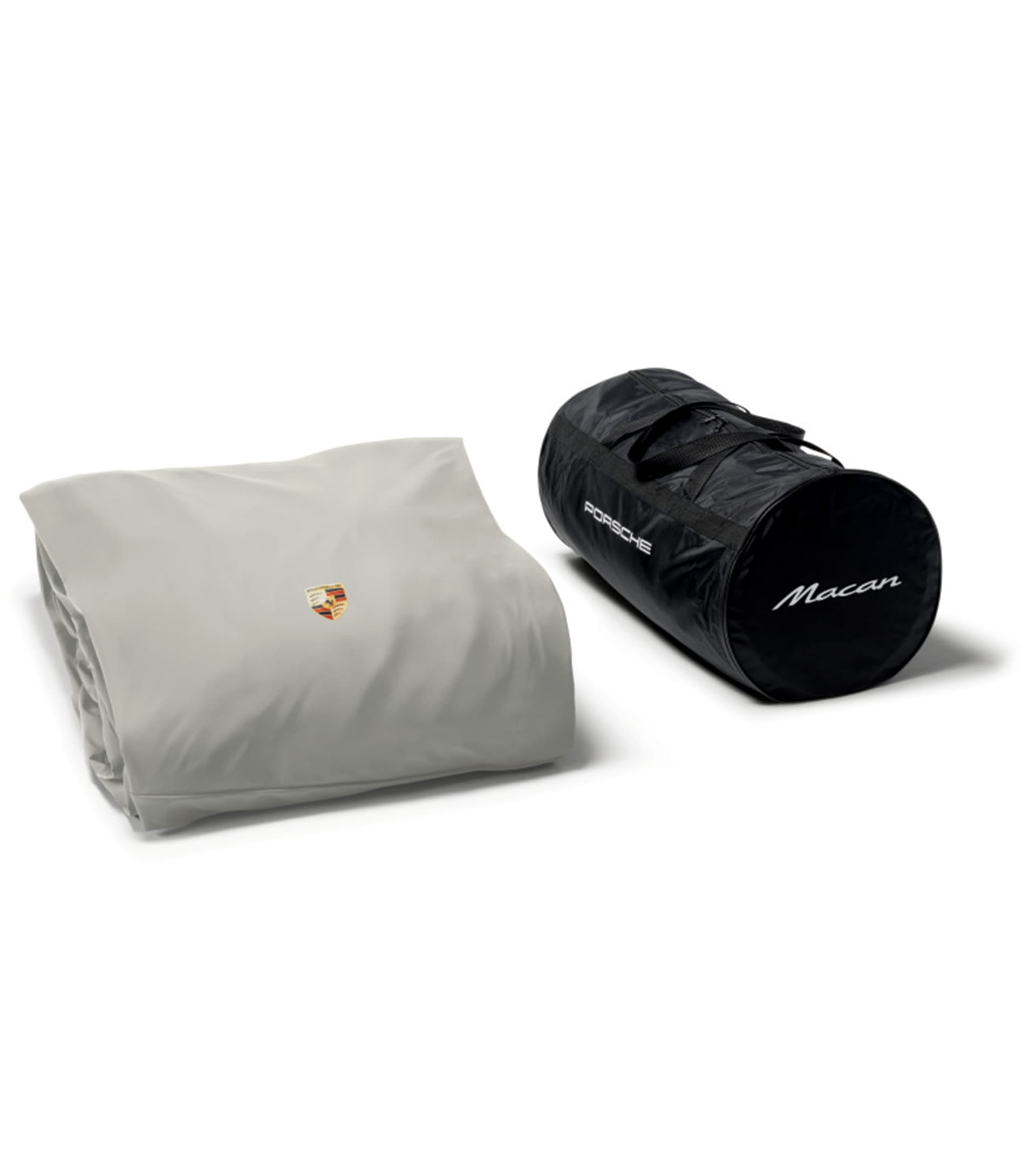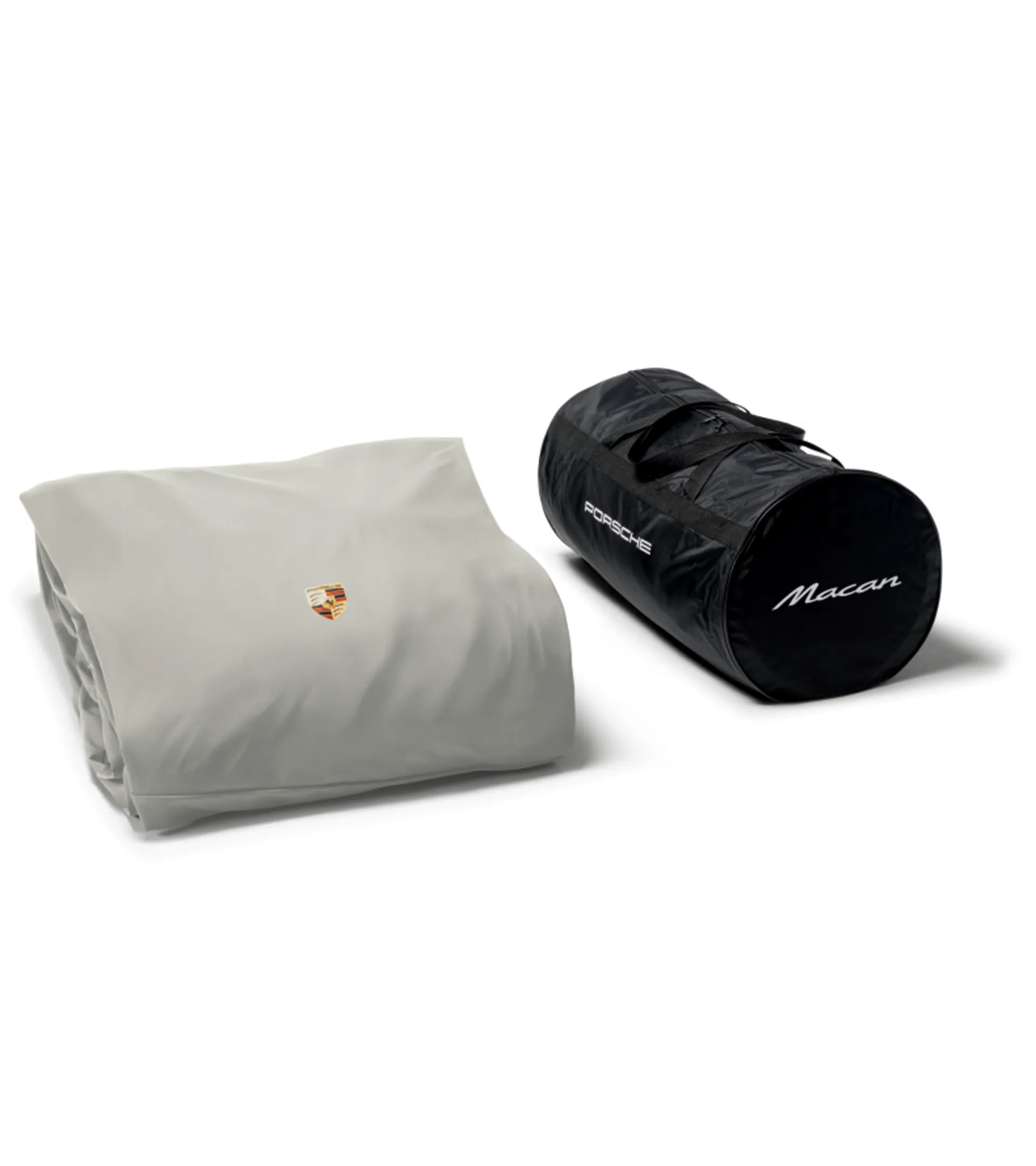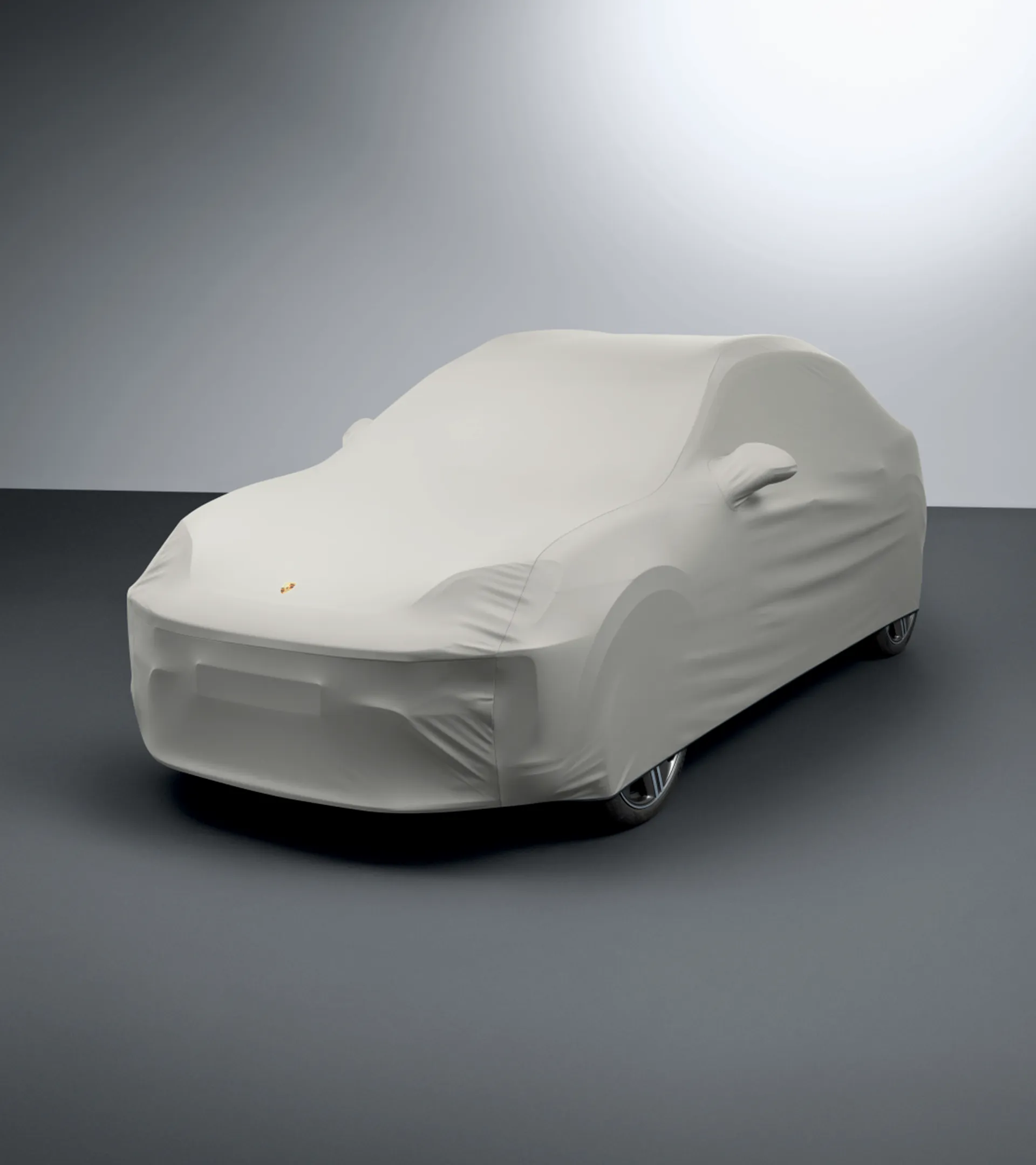 Precyzyjnie dopasowany pokrowiec zewnętrzny na samochód w kolorze beżowym z kolorowym emblematem Porsche. Wykonany z oddychającego i wodoodpornego materiału z zabezpieczeniem przed kradzieżą.