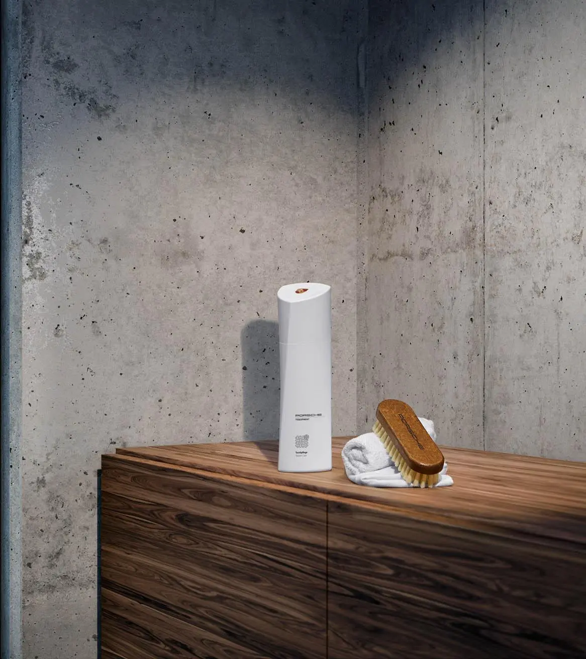 Zestaw do pielęgnacji tekstyliów Porsche zawiera wszystko, co jest potrzebne do dokładnego czyszczenia i pielęgnacji. Skutecznie usuwa nawet uporczywe i głęboko osadzone zabrudzenia. Proces ten jest niezwykle delikatny i dokładny. Zestaw do pielęgnacji Porsche nadaje się do pielęgnacji prawie wszystkich tekstyliów w pojeździe (np. Alcantara®, Race-Tex i sztruksu). Przywraca elegancki wygląd nawet mocno eksploatowanym powierzchniom.