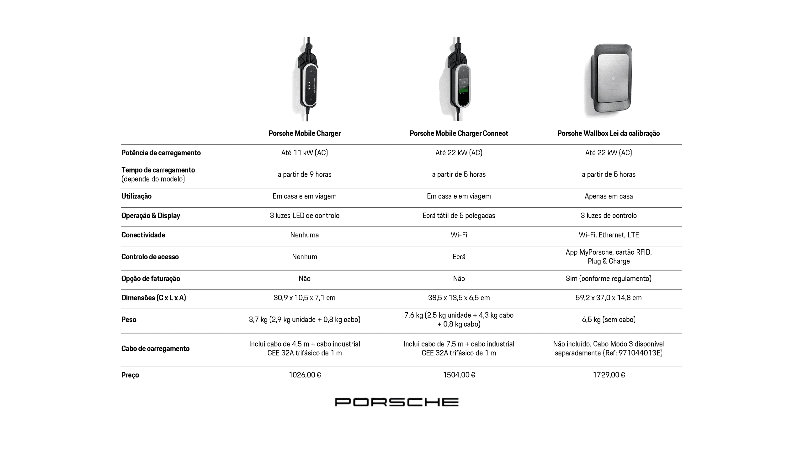 O Porsche Mobile Charger não dispõe de uma função Wi-Fi e não pode ser integrado na aplicação MyPorsche. Esta função só está disponível no Porsche Mobile Charger Connect.
