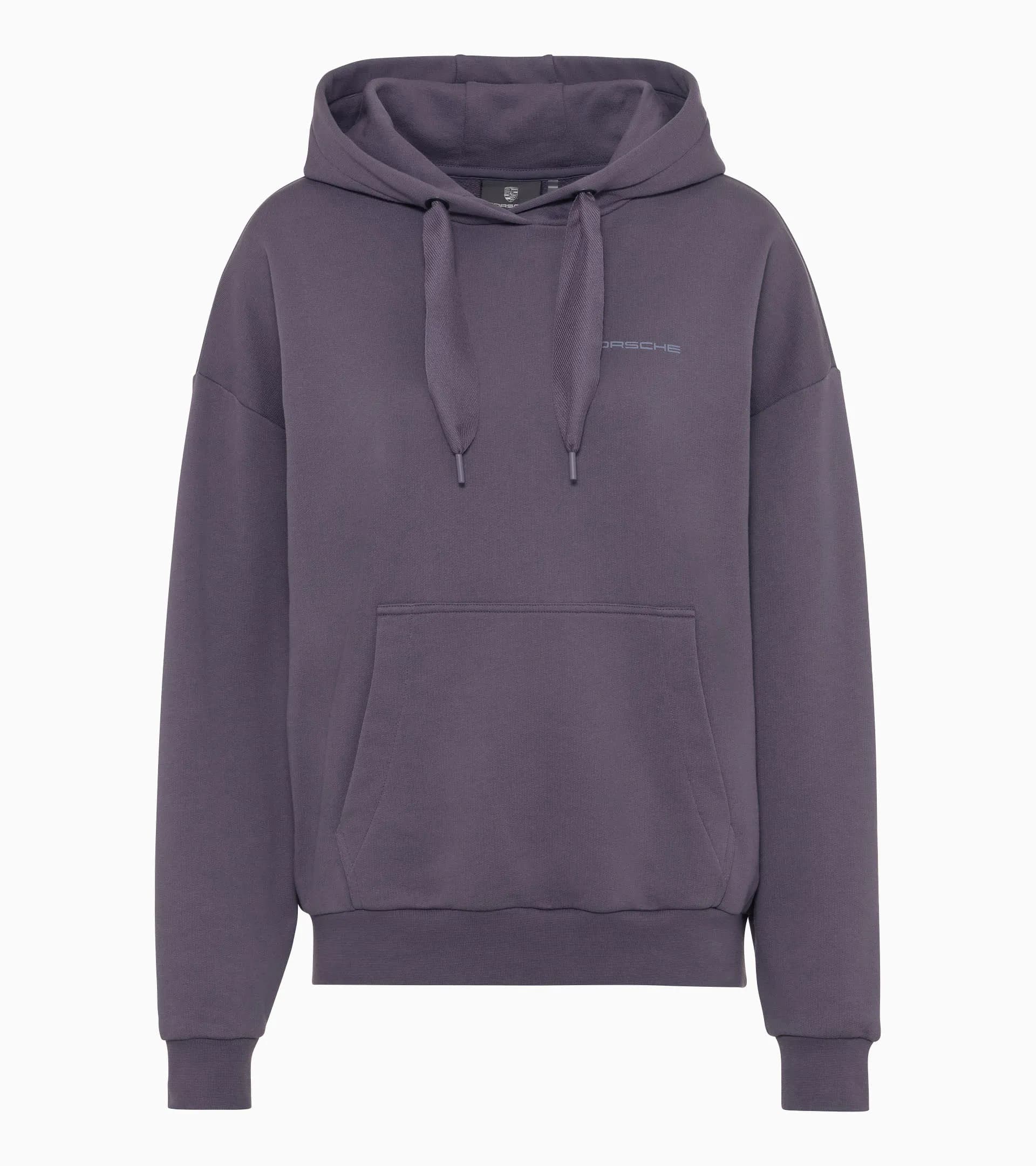 O minimalismo encontra a elegância: a Essential Collection com um design purista que capta o espírito Porsche na sua forma mais pura. A camisola com capuz para mulher dispõe de cordões largos e um bolso canguru cosido. O logótipo Porsche na parte da frente é visualmente impressionante, enquanto o Escudo Porsche grande nas costas torna-o numa verdadeira peça de afirmação.