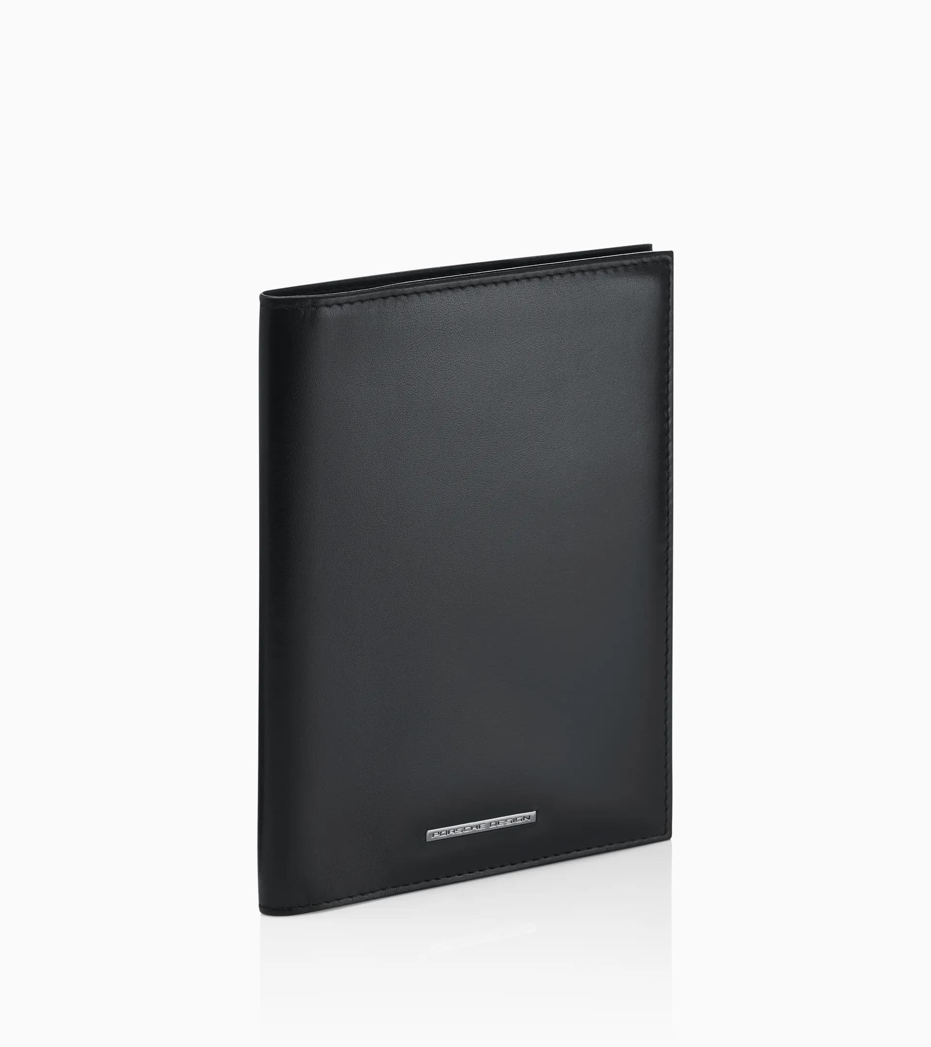 Capa para passaporte exclusiva para homem em calfe liso com logótipo Porsche Design. Adequado para passaporte, 2 cartões de crédito e cartões adicionais. Proteção RFID.