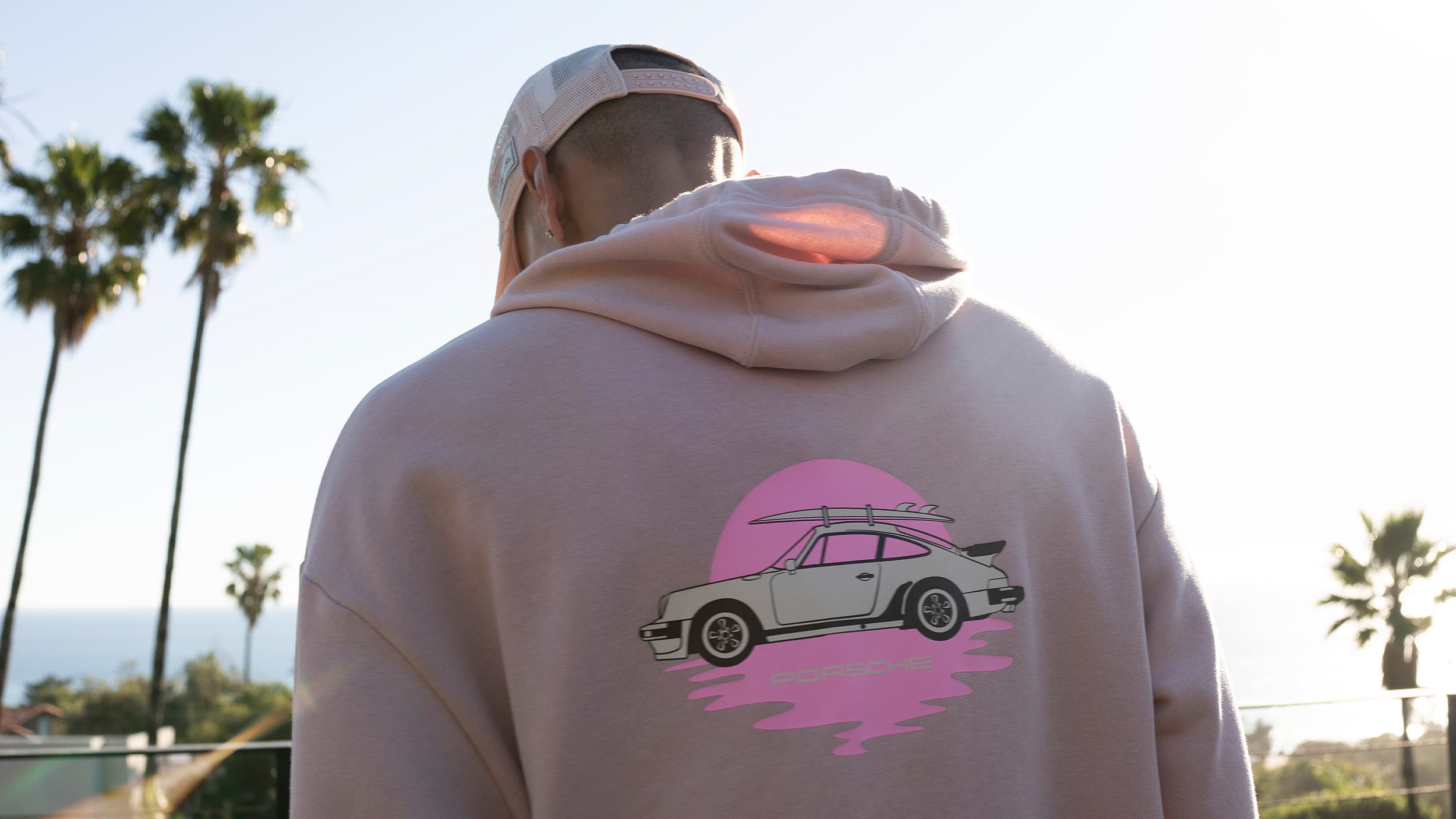 Confortável para o dia a dia: o capuz com bolso canguru da coleção Porsche Legacy impressiona visualmente com a marca Porsche Turbo na frente. Graças ao ajuste relaxado, também é particularmente confortável.