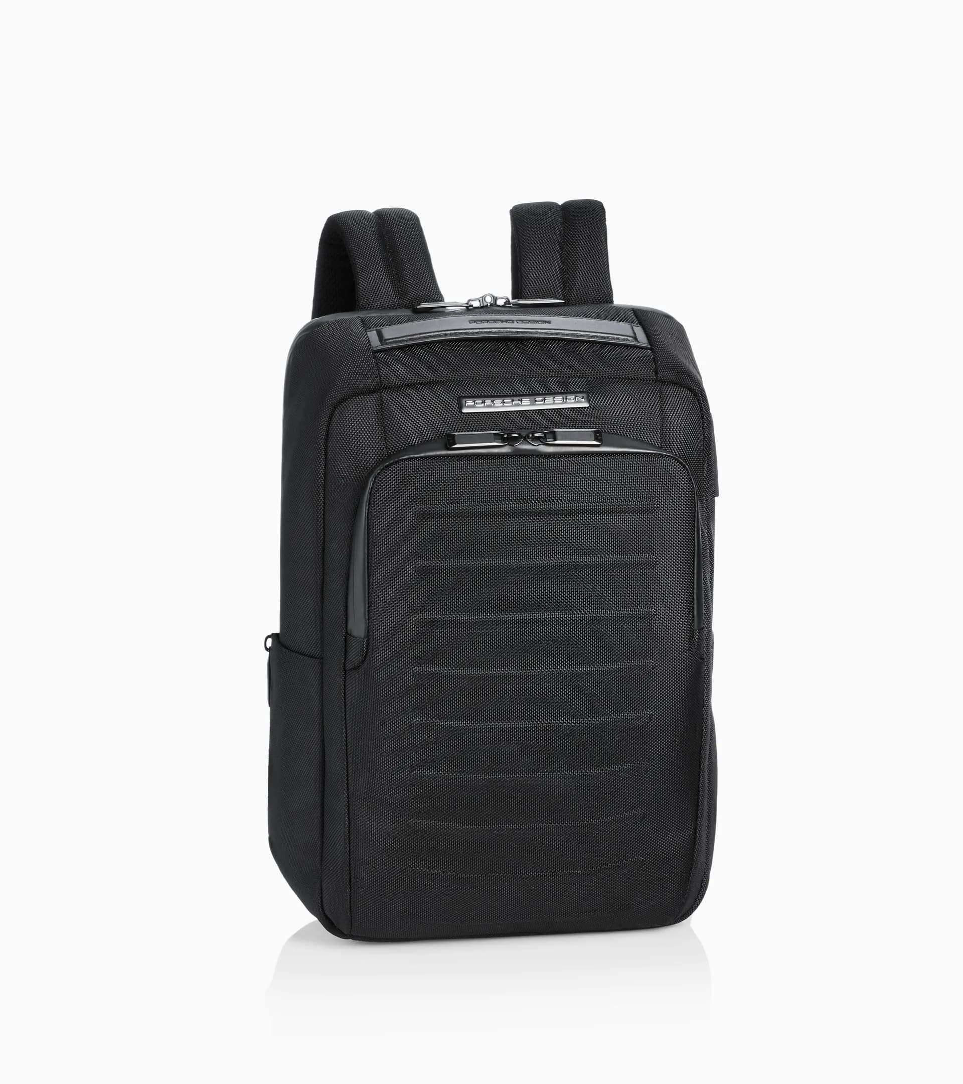Practical Porsche Design backpack made from water-repellent material. With laptop compartment and adjustable straps.