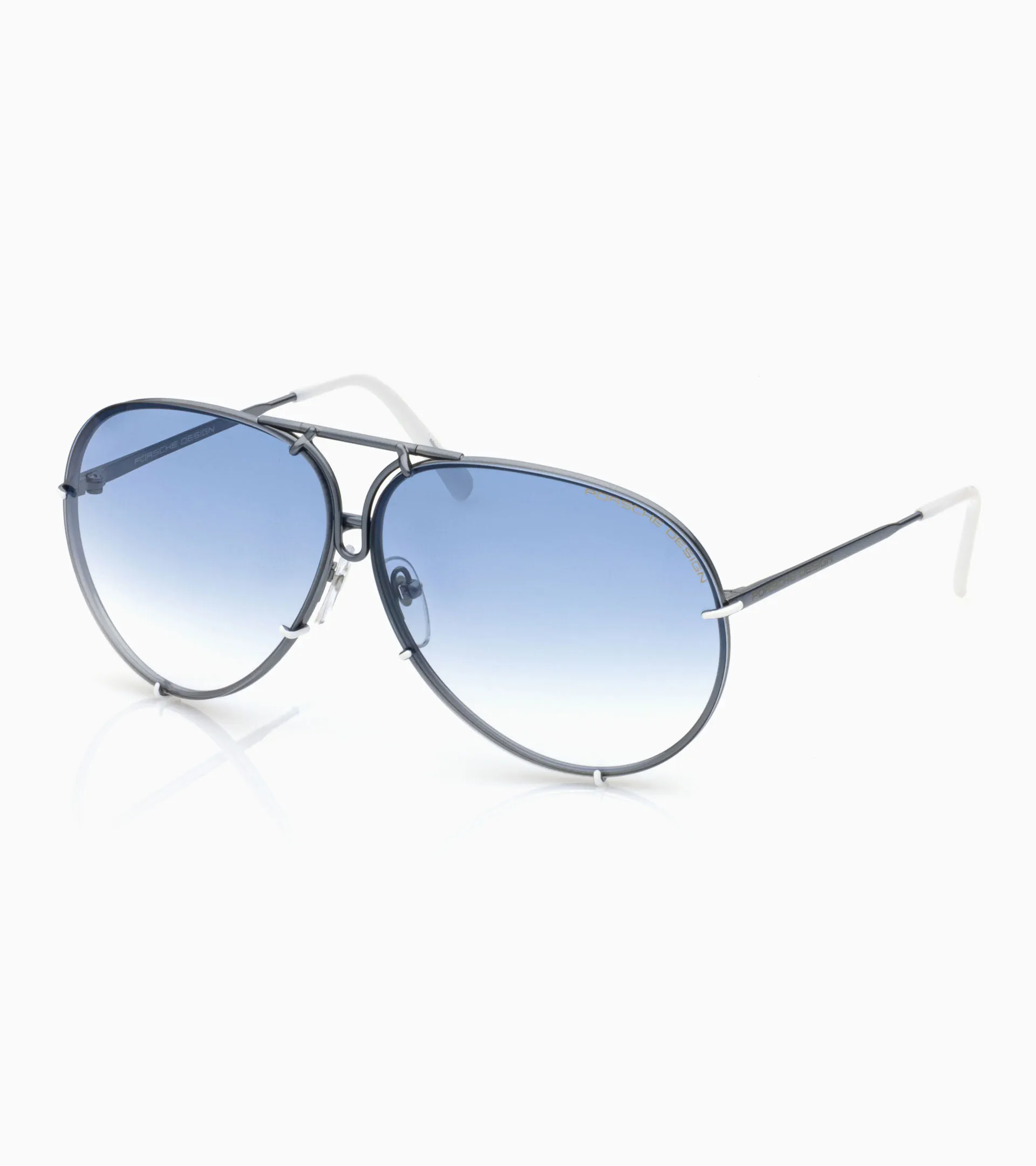 The iconic P’8478 interchangeable lens sunglasses celebrate individuality with this exclusive women's Iconic Aviator Capsule, featuring four stylish color options. Each color captures a unique mood and personality, combining timeless design with modern expression.Available in sizes 66 and 69 and in the following color combinations with a second pair of interchangeable lenses:G (Green, Plum): 1st pair Purple Gradient V155 | 2nd pair Olive Silver Mirrored V656K (Palladium, Pink): 1st pair Pink Gradient V157 | 2nd pair Grey Strong Silver Mirror V776F (Gold, Rose): 1st pair Terra Cotta Gradient V156 | 2nd pair Brown V604L (Blue, White): 1st pair Gradient Blue V57 | 2nd pair Gradient Gray V226