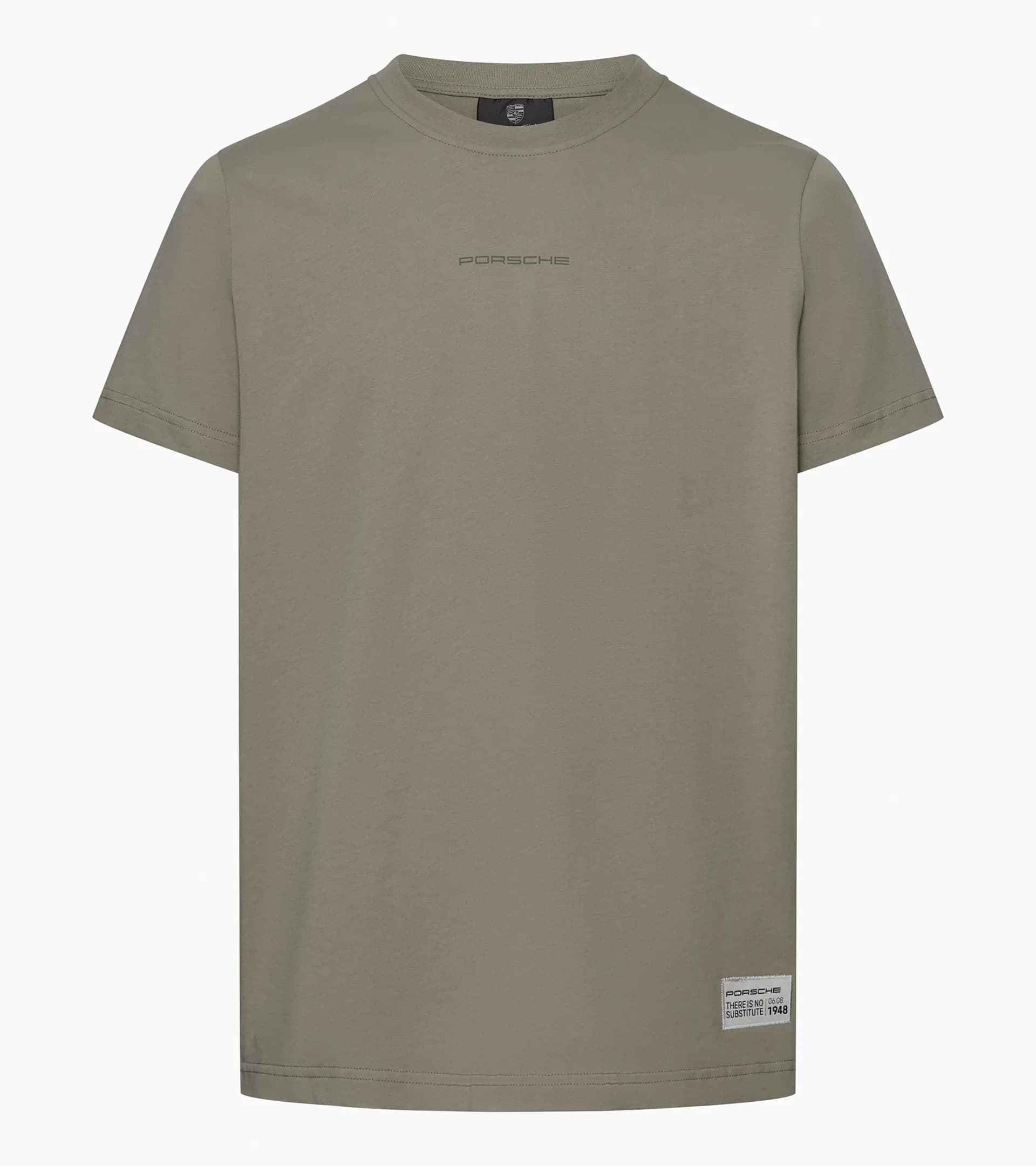 Stylish Porsche crew neck T-shirt. A core piece featuring our signature brand expression "Porsche. There Is No Substitute." on the back – designed to pair effortlessly with the collection’s sweaters, hoodies, and hats. Crafted from 100% cotton for lasting comfort in a regular fit. With neck ribbing, side seams, and double-needle hems, it’s built for durability, minimal shrinkage, and timeless everyday style.