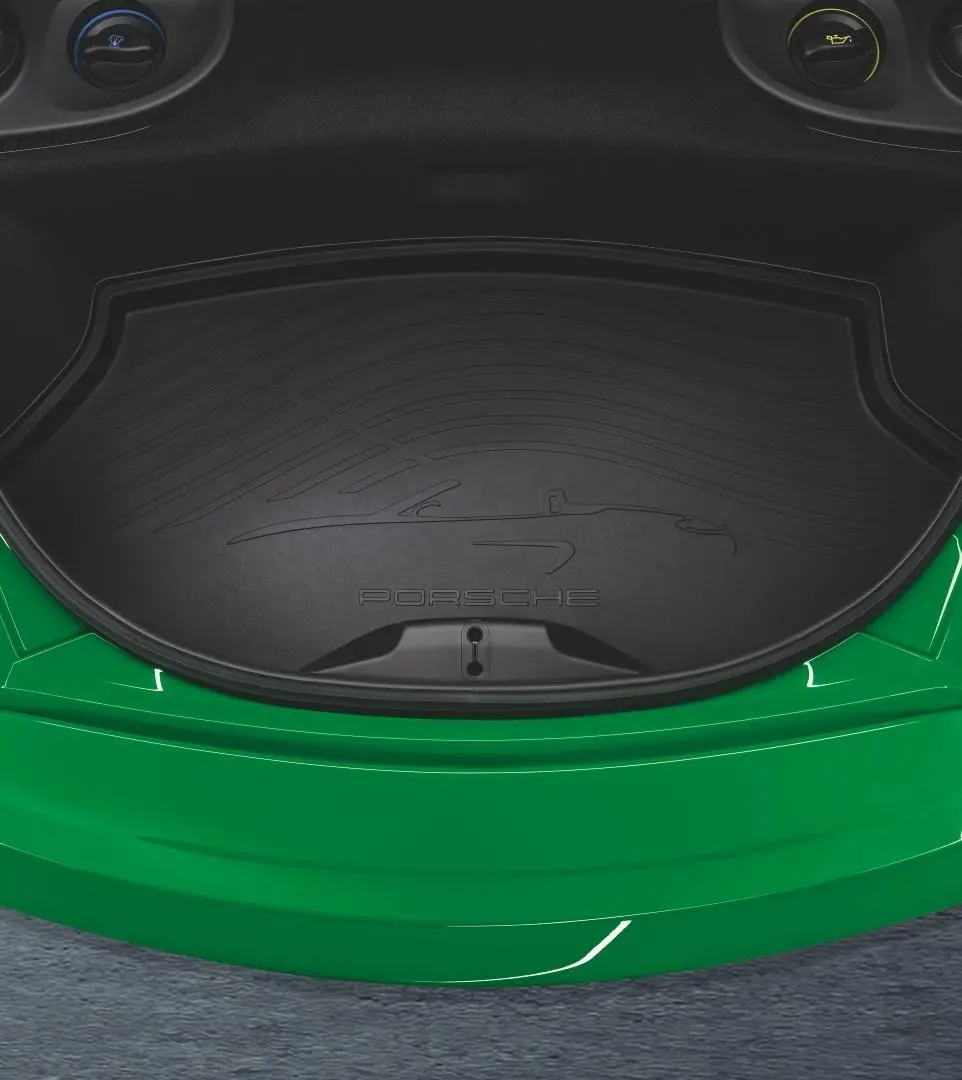 Måttanpassad skyddsbalja med ”PORSCHE”-text och fordonssilhuett. Vattentät och tvättbar.