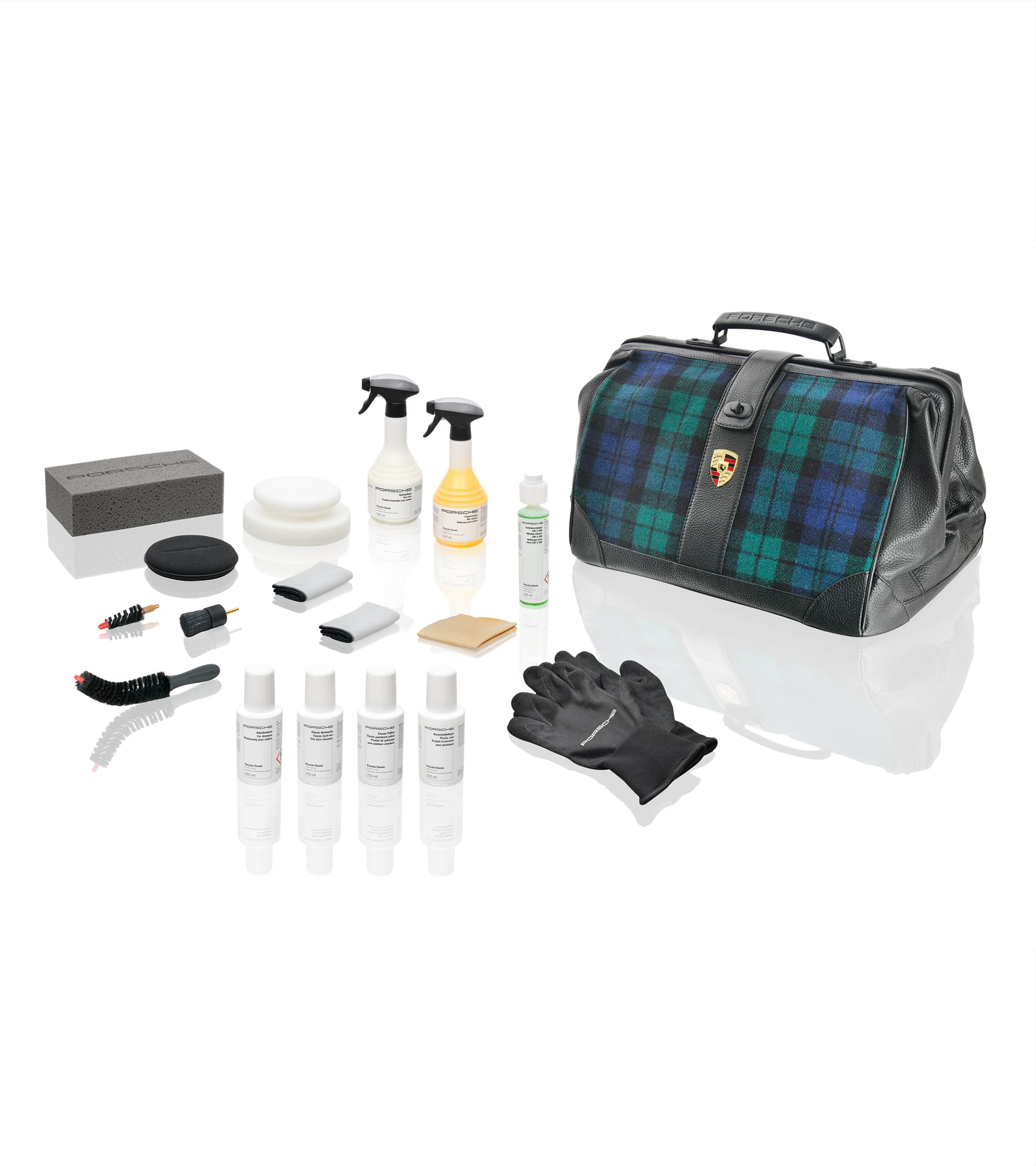 Setet kan användas för hela exteriören och alla Porsche-generationer. Särskilt autentisk: den högkvalitativa förvaringsväskan i klassisk stil med tartanmönster.
