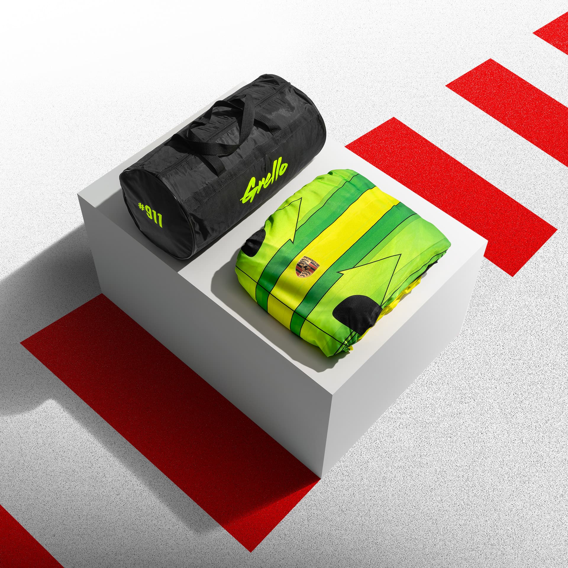 Med bilöverdragen i legendarisk racingdesign kan du ta med dig en bit av Porsches motorsporthistoria in i ditt garage: Grello bilöverdrag är modellerat efter den ljusa 911 GT3 R-racerbilen ”Grello”. Exakt anpassat för att passa din 911 och tillverkat av andningsbart och smutsavvisande material. Du kan hitta andra slående blickfång och ikoniska bilöverdrag i vår Porsche Online Shop.