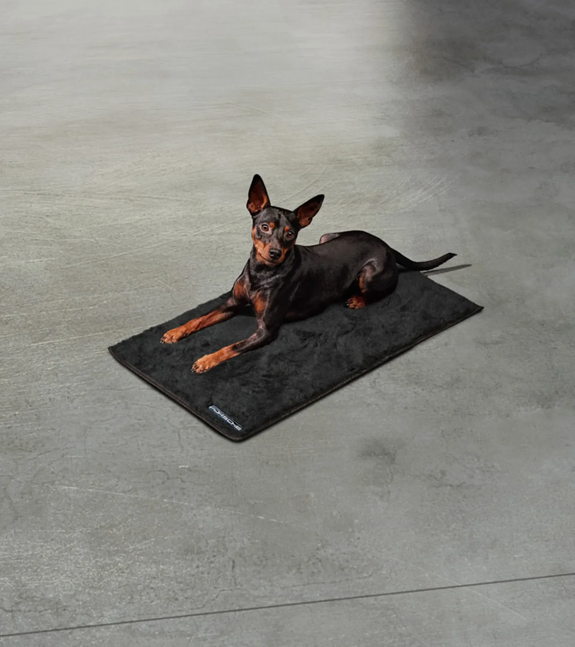 The dog blanket (width 40.5 cm x depth 74 cm) fits perfectly into the Porsche luggage compartment box for dogs (width 50 cm x depth 82 cm x height 69 cm).