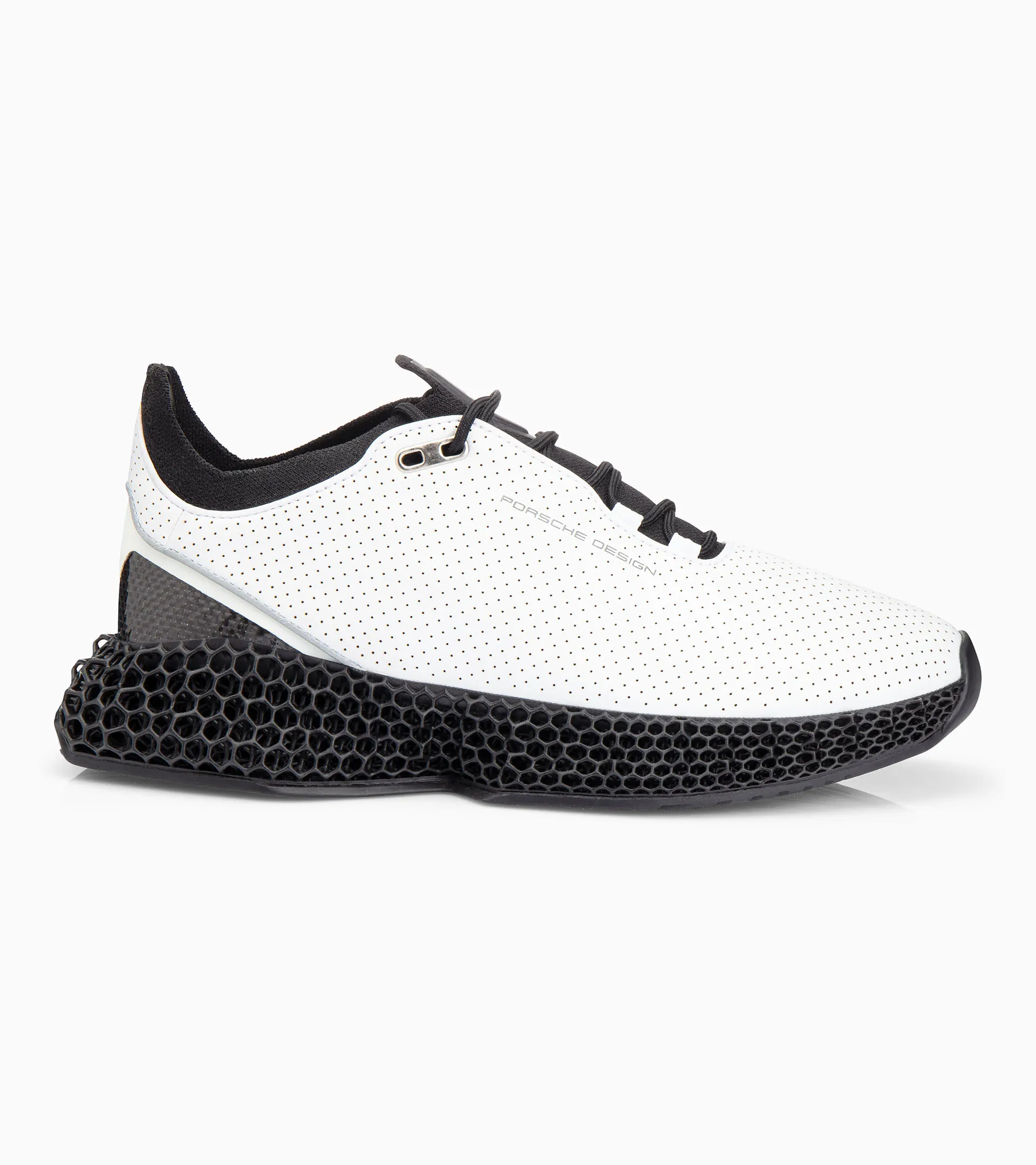 Exclusive material. Ingenious production. Impressive performance – the Porsche Design 3D MTRX redefines high-tech footwear.The 3D-printed sole, specially developed for Porsche Design, combines outstanding lightness with soft cushioning and high stability – for all-day comfort at the highest level. The premium leather upper with all-over perforation ensures optimal ventilation and a striking technical look. Carbon fibre elements underline the exclusive design and lend the trainers their unmistakable premium character.