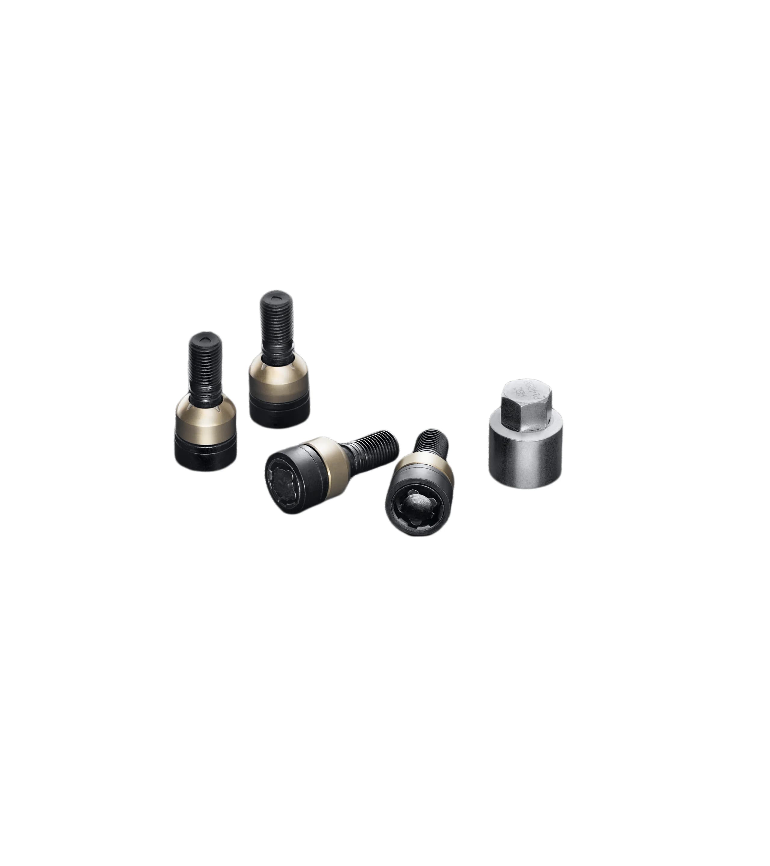 Anti-theft protection set, in Black, comprising 4 coded wheel bolts.