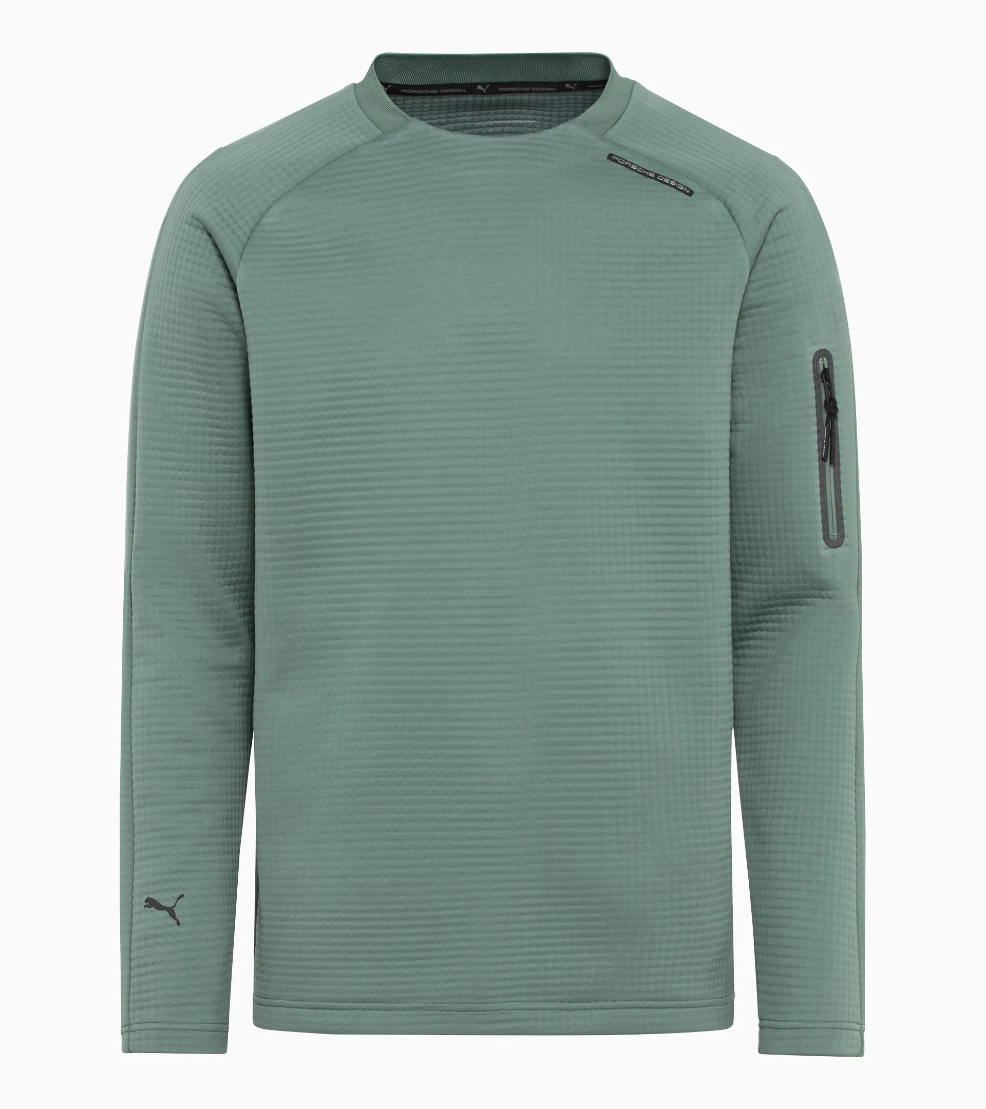 Light and comfortable: the sweatshirt made of 100% recycled polyester with a crew neck and 3D spacer fabric is inspired by the exclusive Porsche DNA. The zip of the sleeve pocket with Porsche Design branding is an exclusive visual detail.