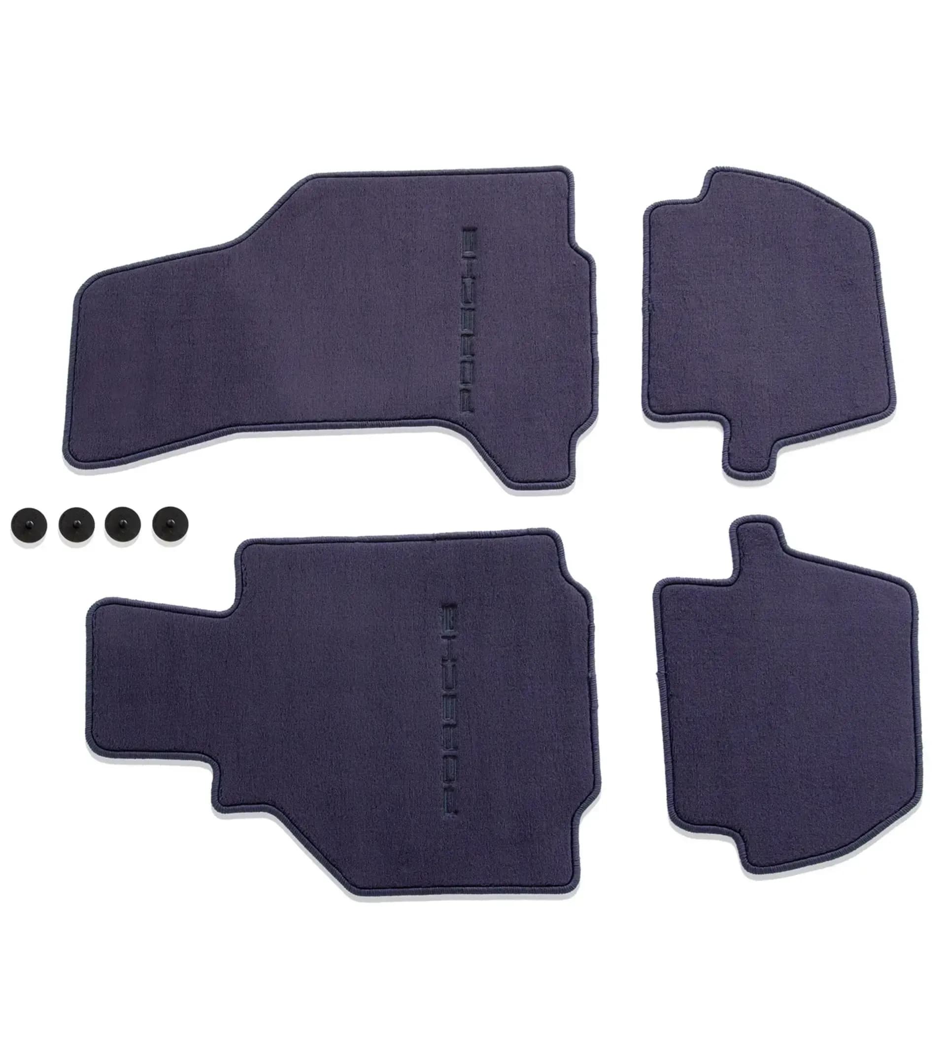Enhance the look of your Porsche 996 Cabriolet and Targa (2002-2005) with this set of four Metropolis Blue floor mats. Compatible with models up to model year 01 (digital sound package) and from model year 02 (Bose analogue sound package).