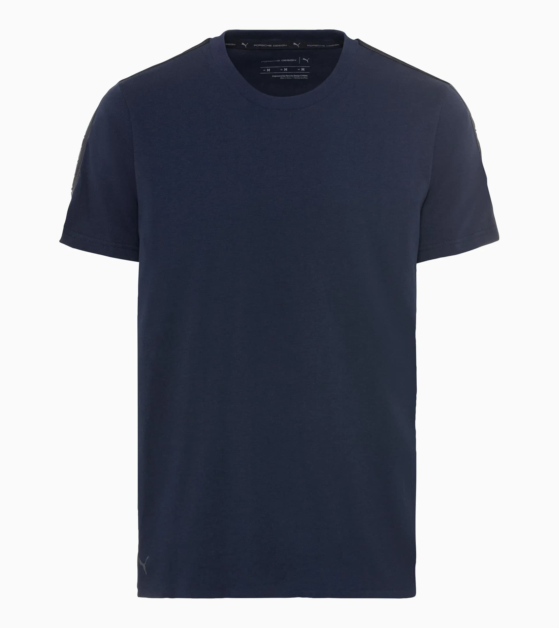 Enhances any leisure look: the leisure T-shirt made of cotton, adorned with Porsche Design taping on the sleeve featuring a seatbelt-inspired design. The side slit ensures freedom of movement and is also a striking visual detail.