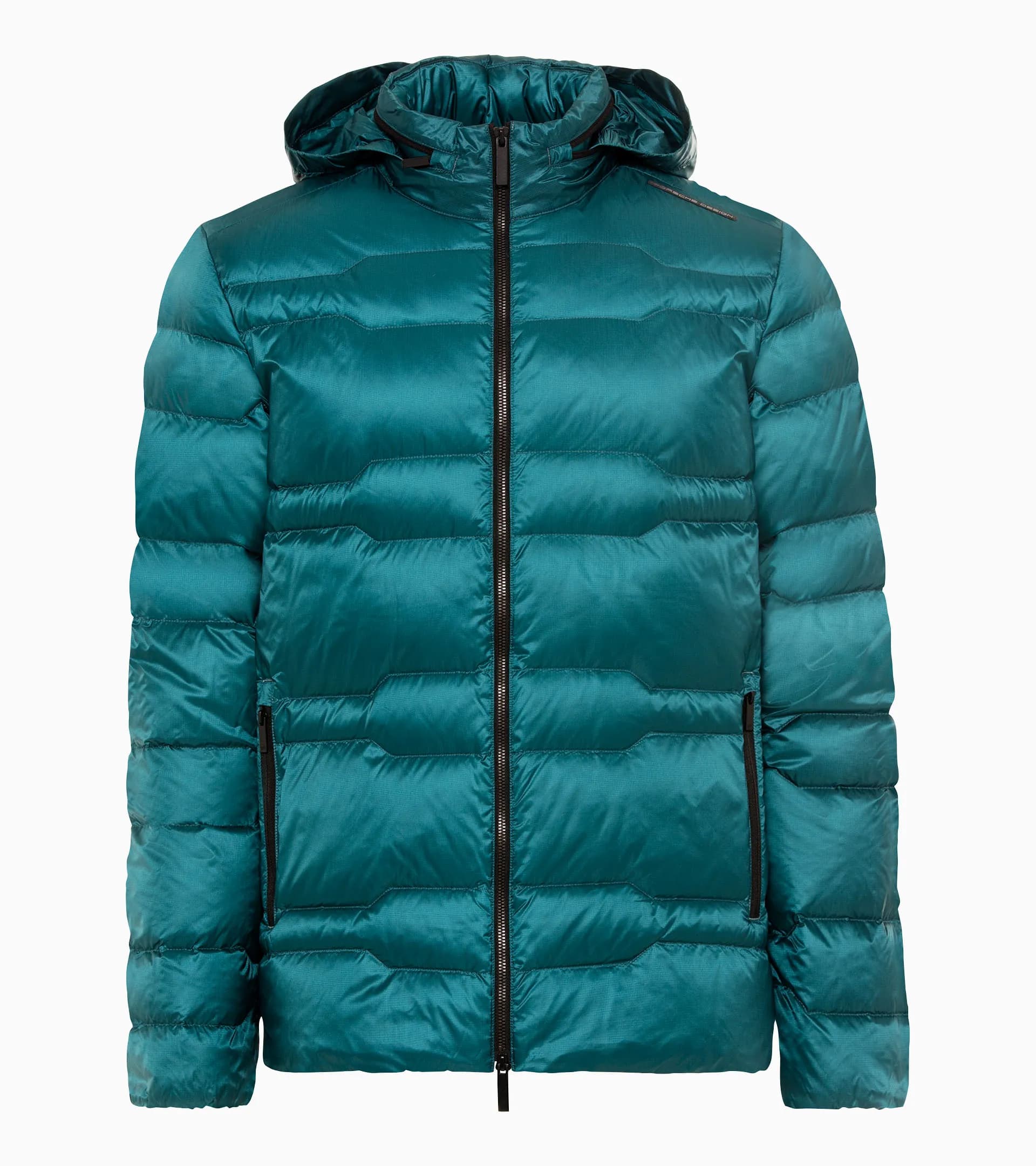 Smart and stylish through spring: the premium quilted jacket made from 100% recycled nylon is the perfect companion for the transitional season. The jacket impresses with its efficient insulation and, thanks to Pertex® Quantum technology, is extremely light yet uncompromisingly durable. The jacket is made from 100% recycled nylon and has a Responsible Down Standard certification. Inspired by the seat centre of the 911 Turbo, the jacket impresses with a striking quilted pattern. The highlight of the jacket: it can be stowed in an additional inner pocket and easily transported with a carrying strap. The two side pockets with zips are ideal for warming your hands. The stand-up collar impresses with its functionality and style. The detailed design is rounded off by the Porsche Design branded carrying strap.