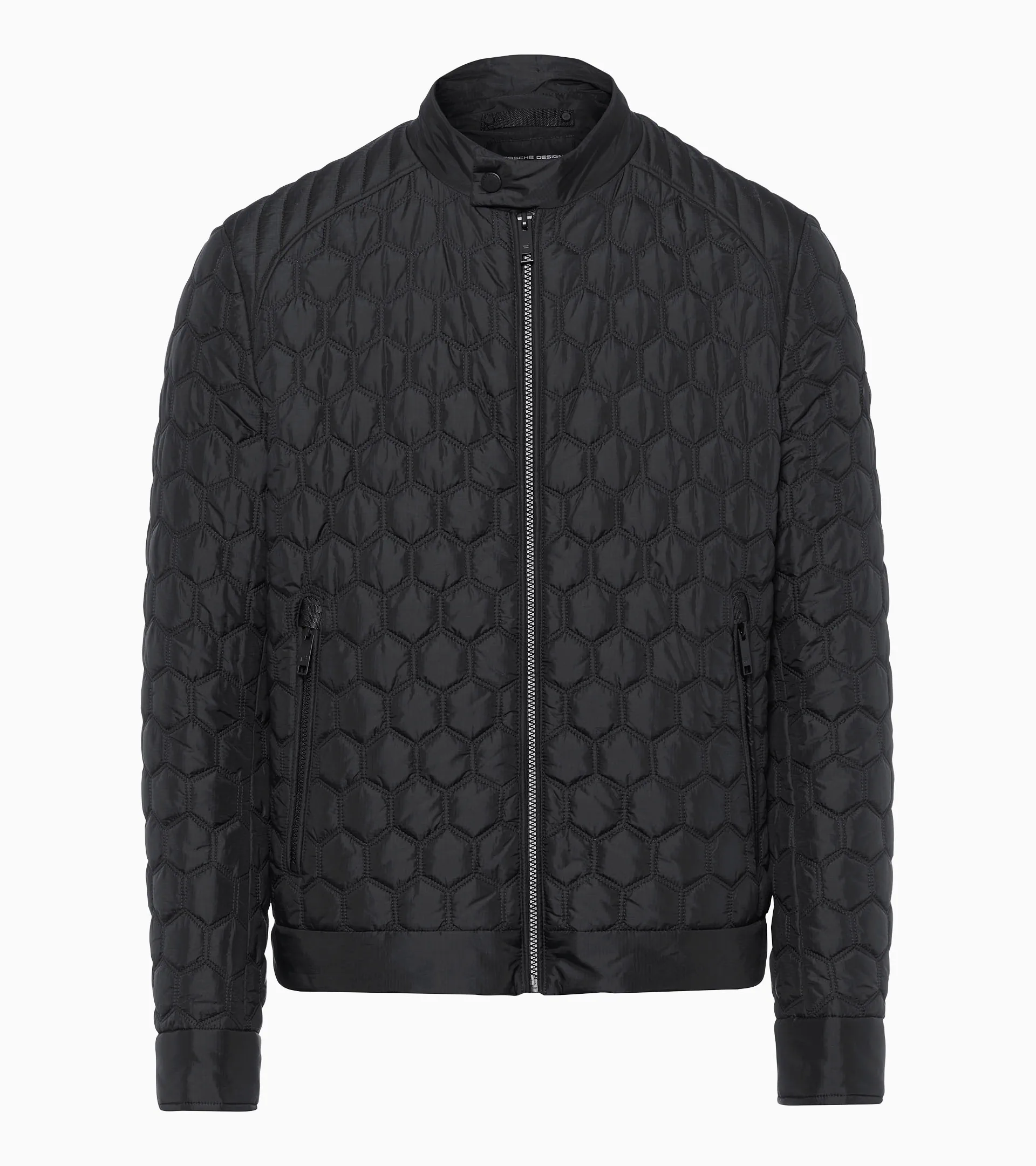 Modern jacket featuring distinctive hexagon quilting with super lightweight, down-free filling and concealed zip pockets. Made in Europe.
