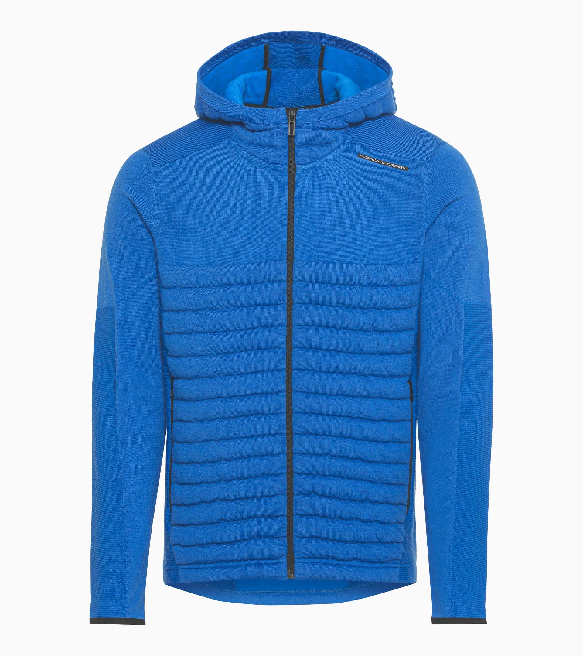 Light, warm Porsche Design jacket with merino wool. Dynamic design mix of knitwear and padding.