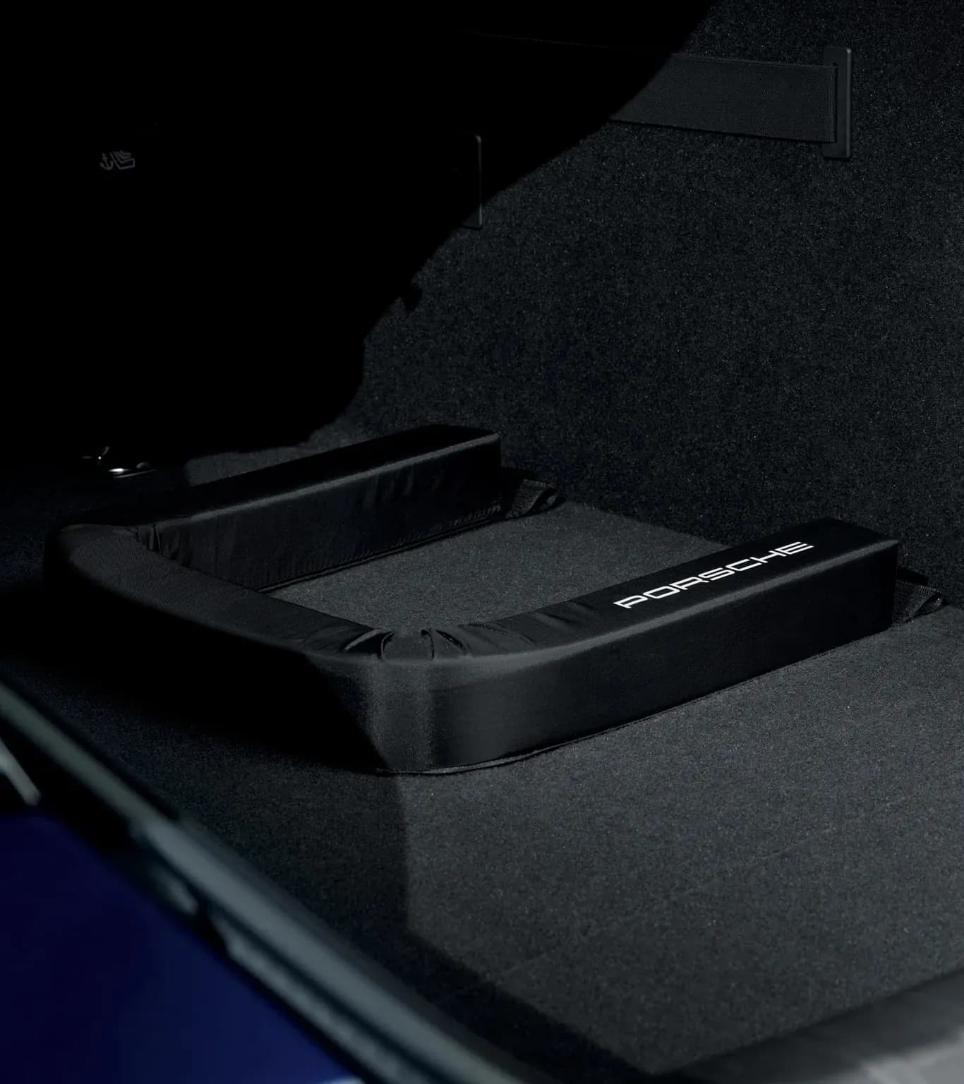 Ensure order in your Porsche's luggage compartment with the flexible luggage fixation. Made of moldable foam with a Velcro layer, it securely holds items in place.
