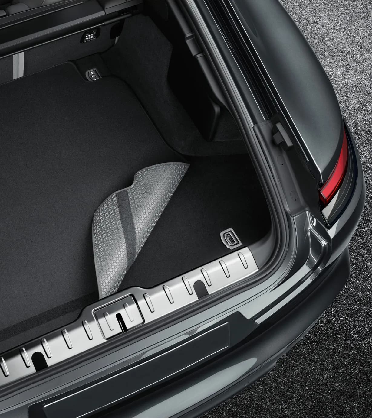 Reversible luggage-compartment mat with Nubuk surround including loading sill protection. Rubber with anti-slip surface on the back. Available in selected interior colours.