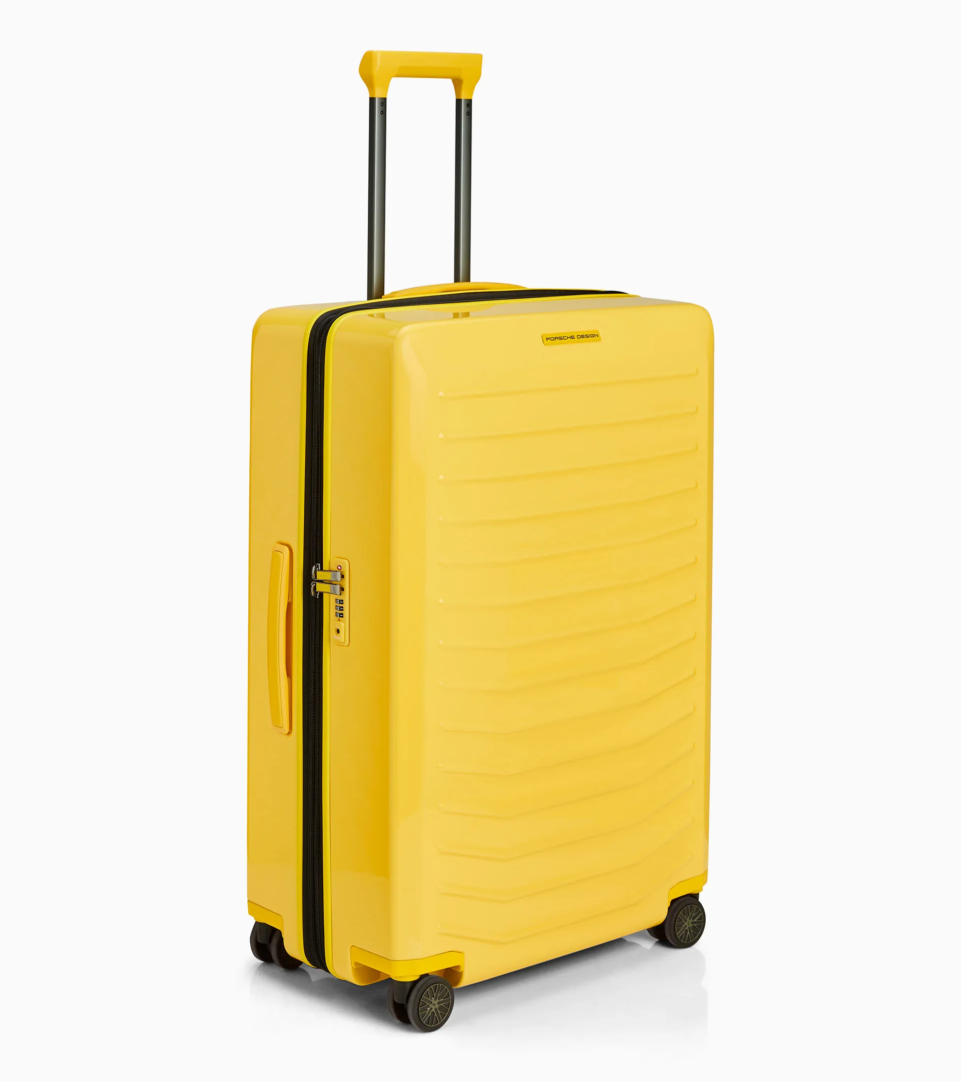 Ultra lightweight and inspired by the colors of the Porsche 911: the Roadster Hardcase collection. The case series in polycarbonate designed by Studio F. A. Porsche is the perfect fusion of form, function and design. The large Porsche Design Roadster Hardcase 4W Business Trolley L catches the eye with a weight of just 5.3 kg and its dynamic monochrome look with Porsche signature details. Ball-bearing-mounted, smooth-rolling wheels in the style of the Porsche Taycan rims and an ergonomic multi-height handle ensure optimum performance. Bags can be effortlessly placed and removed over the rounded edges of the handle. The divided interior is also flexible—and can easily be expanded at any time. An ultra-secure two-way zipper and a TSA-approved lock protect your luggage.