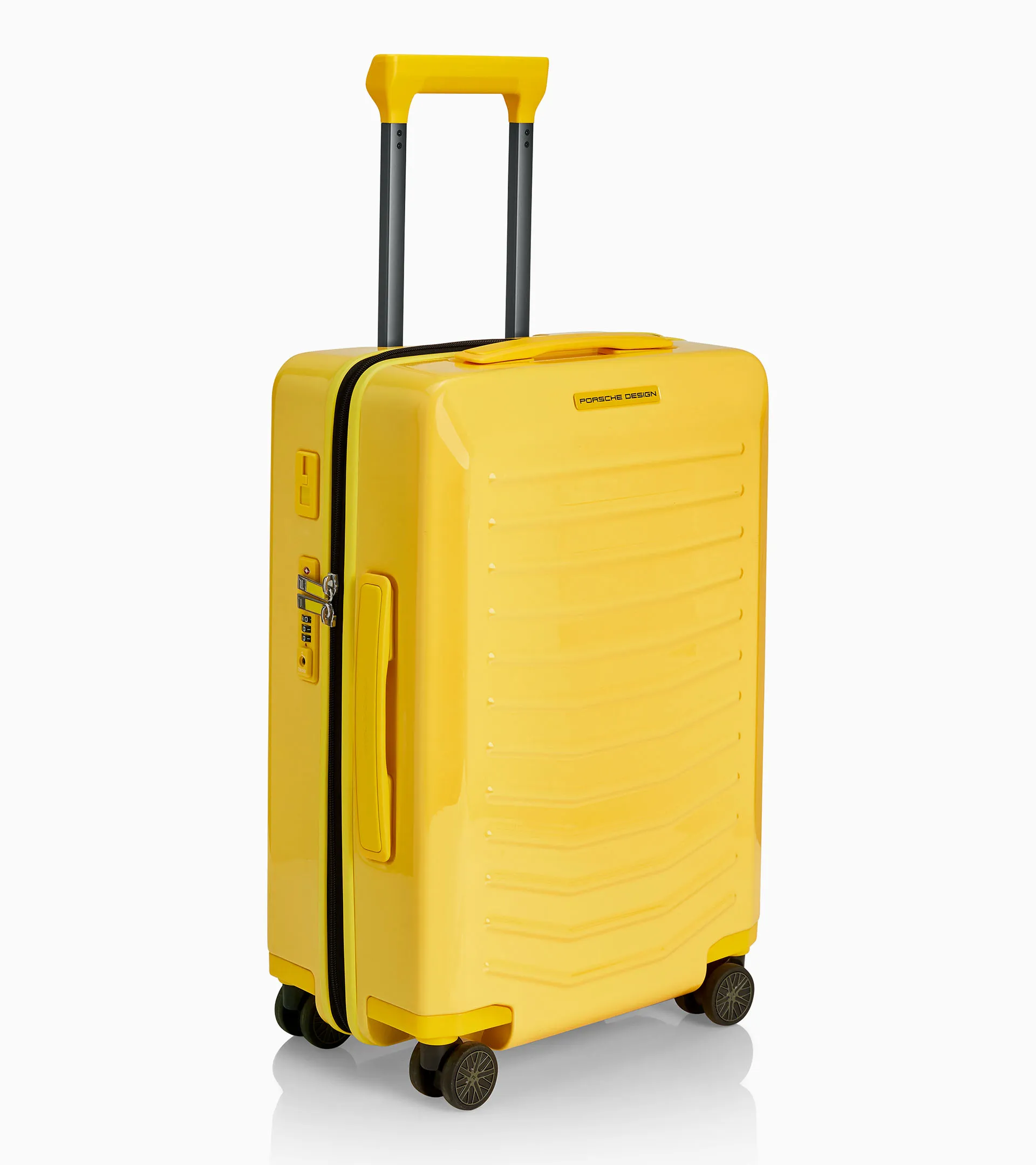Ultra lightweight and inspired by the colors of the Porsche 911: the Roadster Hardcase collection. The case series in polycarbonate designed by Studio F. A. Porsche is the perfect fusion of form, function and design. The cabin-sized Porsche Design Roadster Hardcase 4W Business Trolley S catches the eye with a weight of just 3.0 kg and its dynamic monochrome look with Porsche signature details. Ball-bearing-mounted, smooth-rolling wheels in the style of the Porsche Taycan rims and an ergonomic multi-height handle ensure optimum performance. Bags can be effortlessly placed and removed over the rounded edges of the handle. The divided interior is lined with signature PD fabric—and is protected by an ultra-secure two-way zipper and a TSA-approved lock.