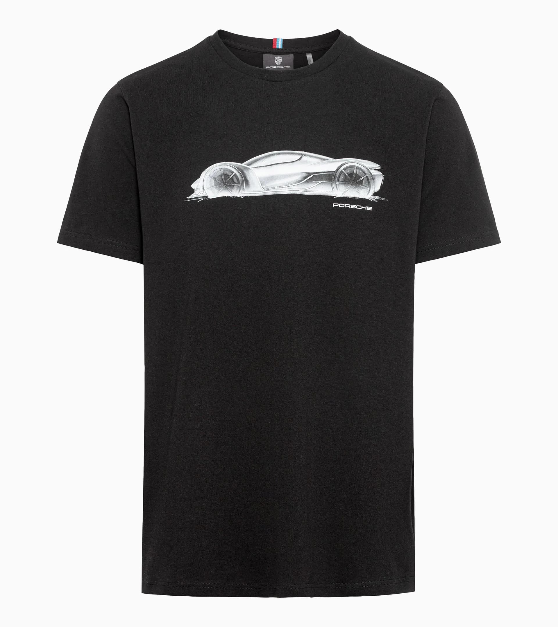 Exclusive Porsche cotton T-shirt with printed sketch of the Mission X hypercar.