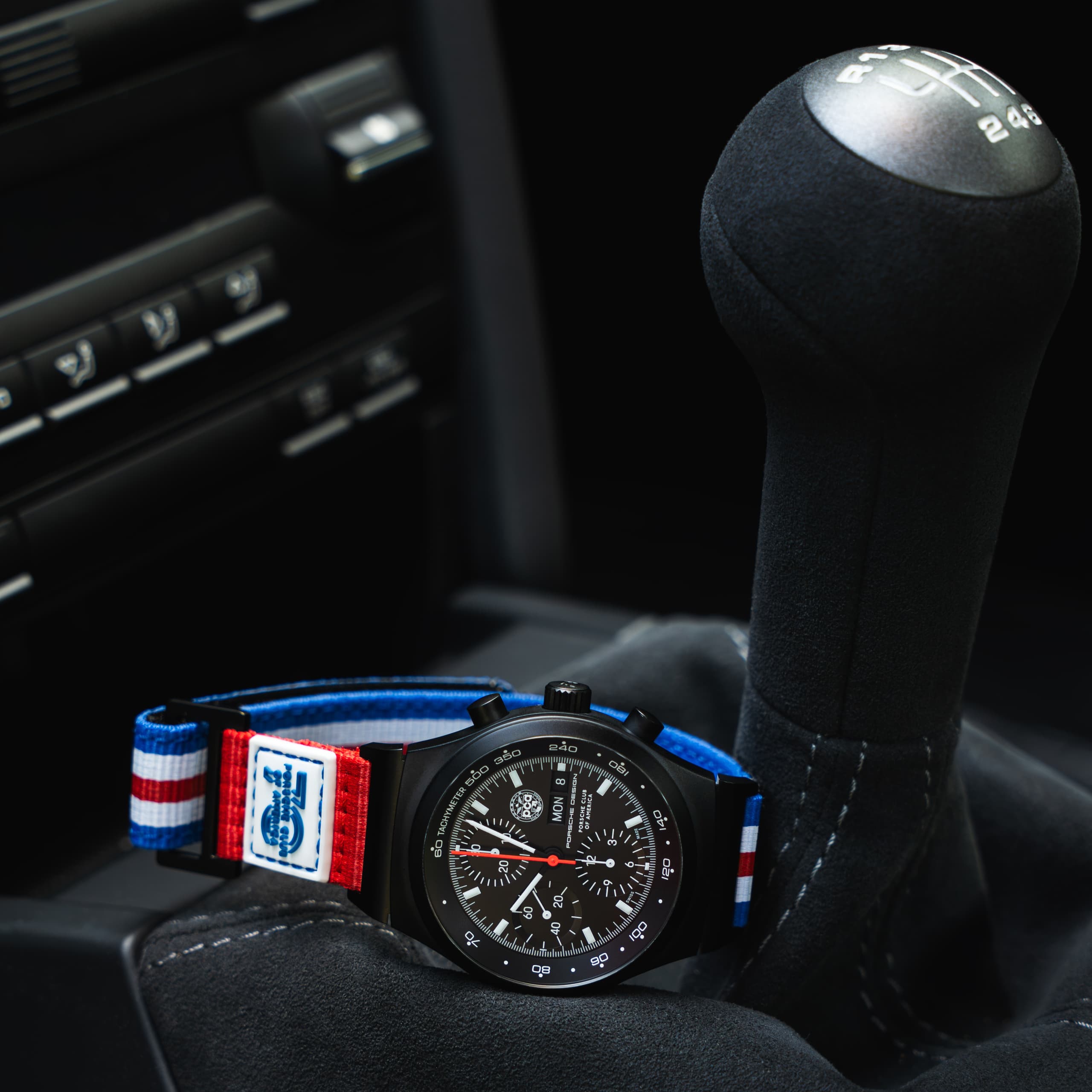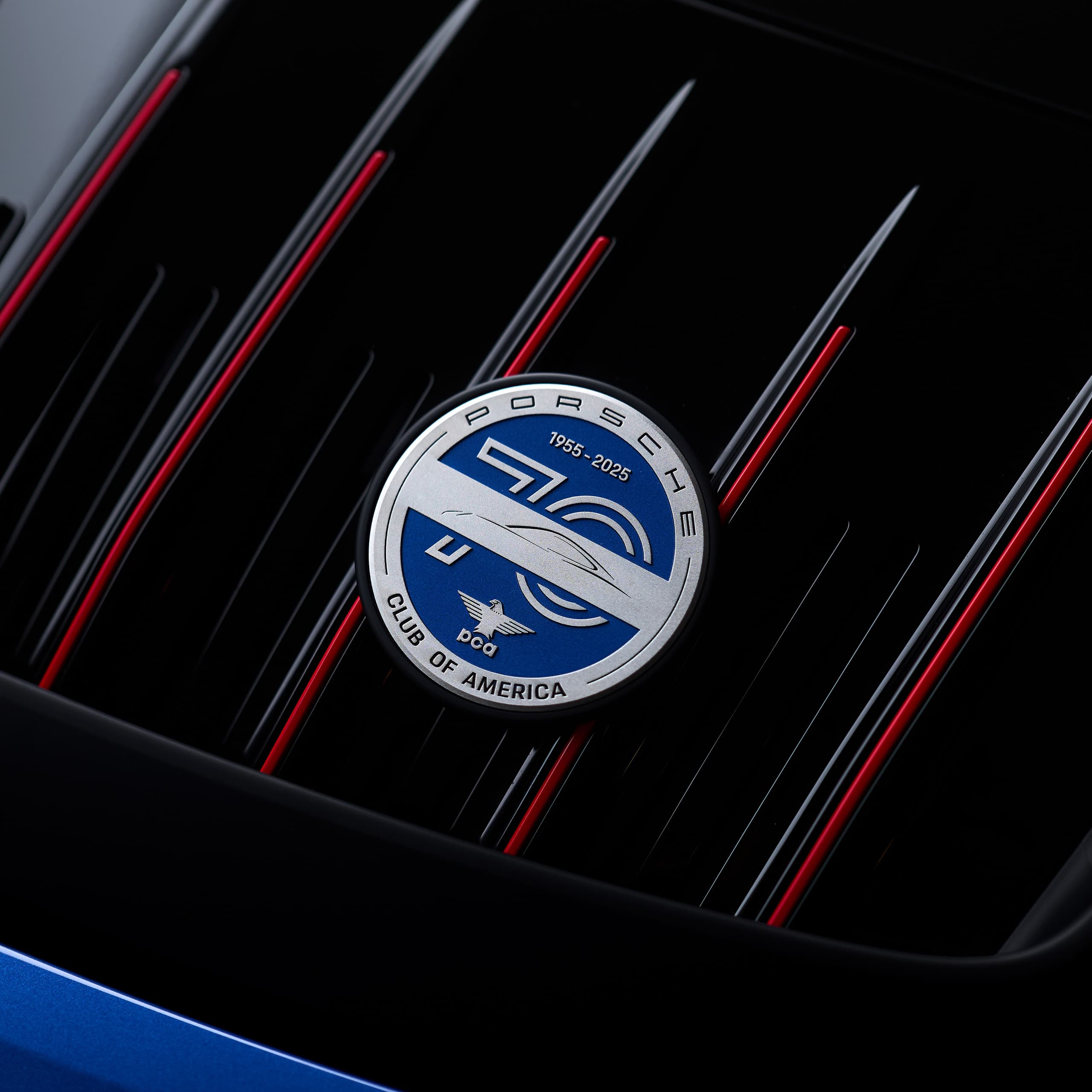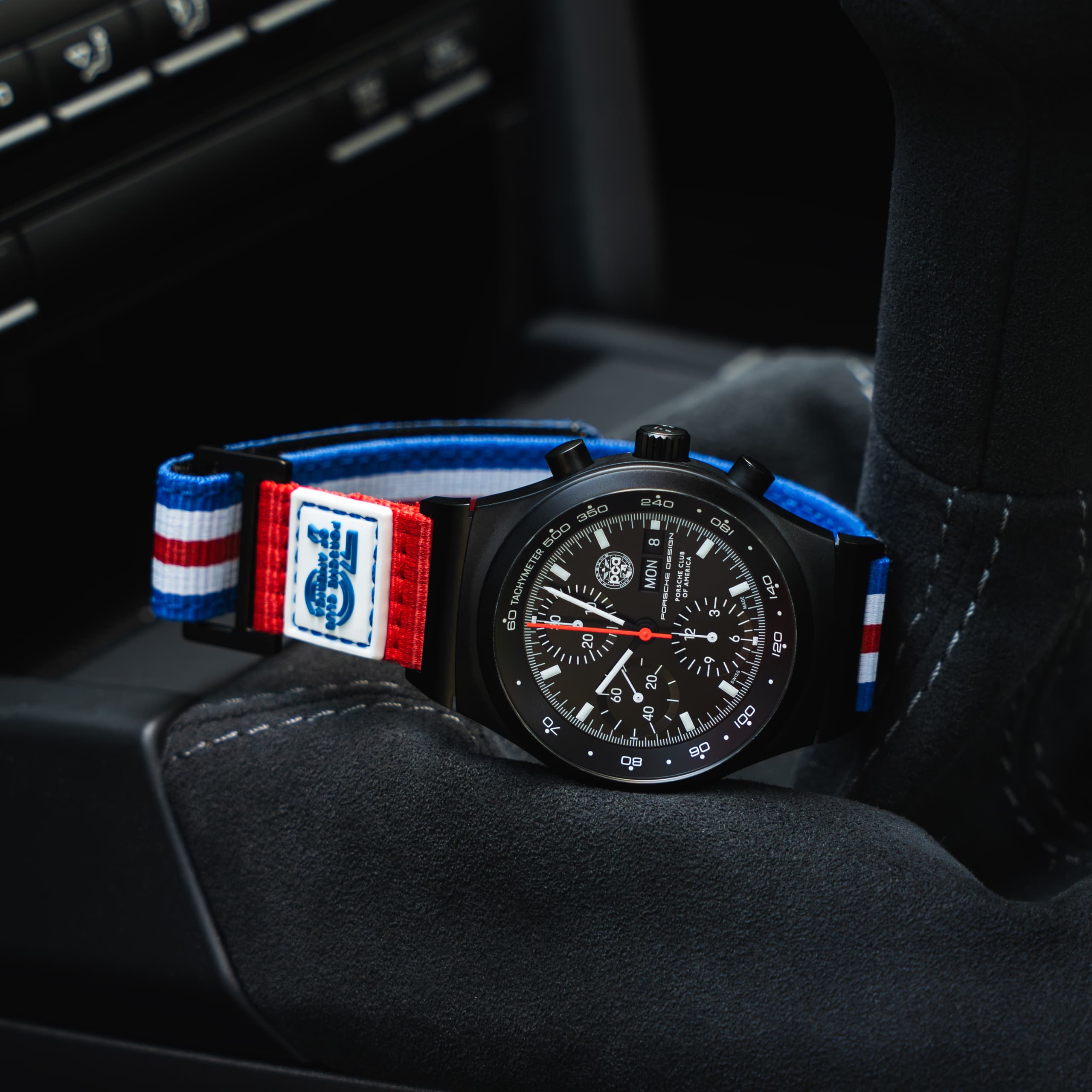 In addition to the regular titanium bracelet, the watch comes with a textile strap in Club Blau featuring the PCA logo. And those, who purchase this extraordinary timepiece by December 31, 2025, will receive a special anniversary gift: the "70-Year Anniversary" strap designed in PCA's red, white and blue colors, and featuring the "70 Years Porsche Club of America" anniversary logo.